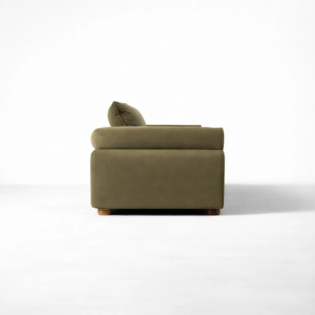 The INTERIORZE Alder olive green 3 seater sofa is made with a humble intention: to give your home a comfortable, reliable seat that looks refined without trying too hard. The roll-arm profile adds softness, while the wide seat and supportive back cushions make it practical for daily use olive green 3 seater sofa.