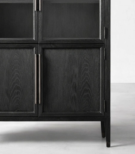 Yes, this showcase cabinet is crafted in ash wood and finished in a rich black tone for a refined premium look.