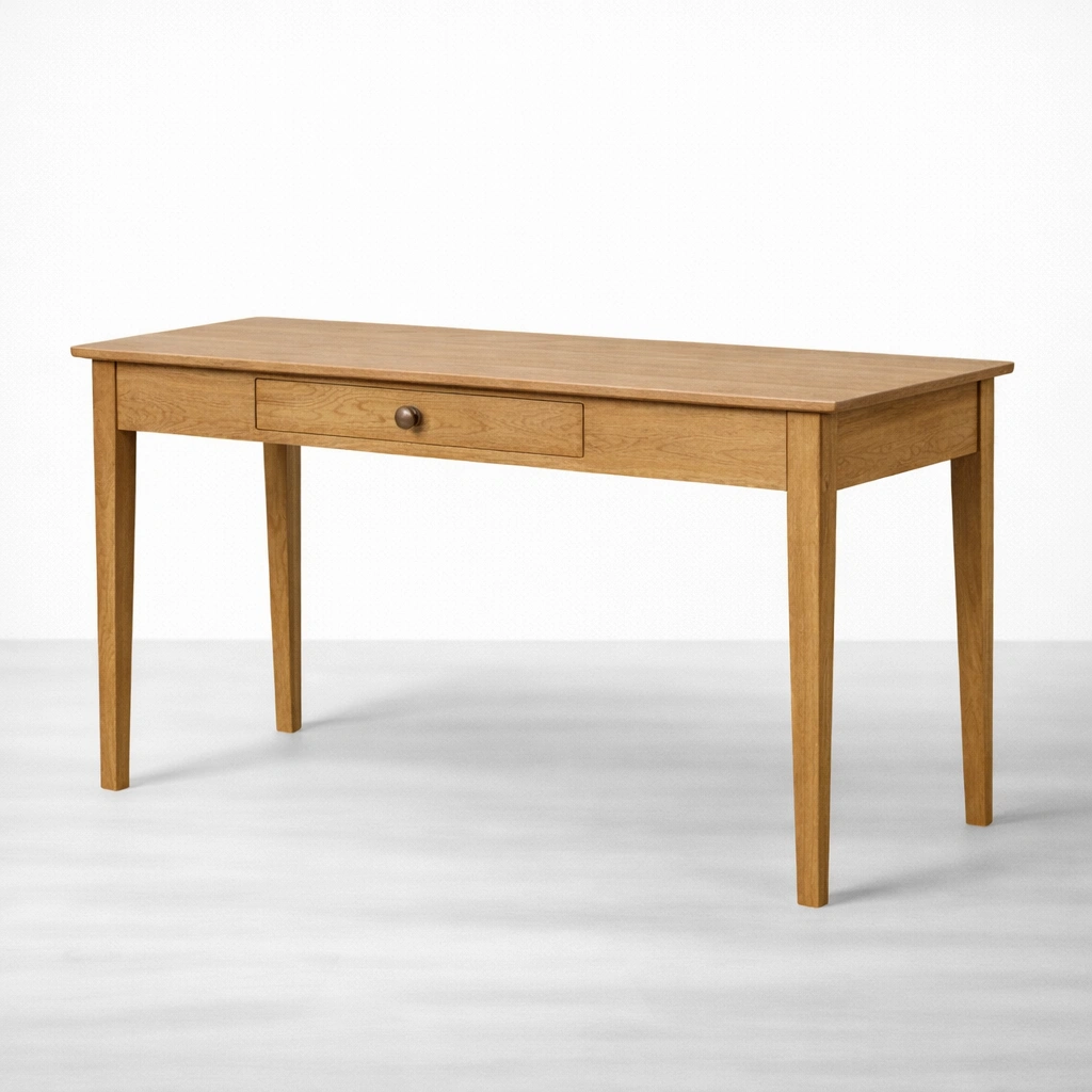 Crafted in ash wood, this table highlights a soft and natural grain pattern that gives warmth to the room without making the design feel heavy. The structure is simple, refined, and easy to place in many types of interiors. With its straight legs, neatly framed drawer front, and broad work surface, this ash wood study table with single drawer is both practical and timeless.
