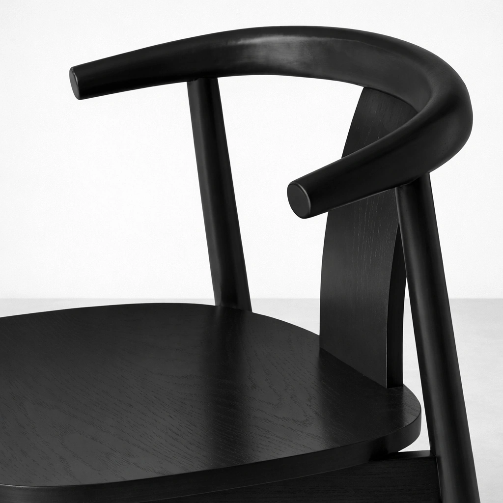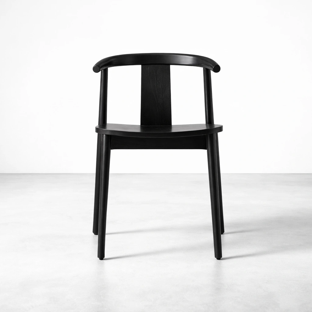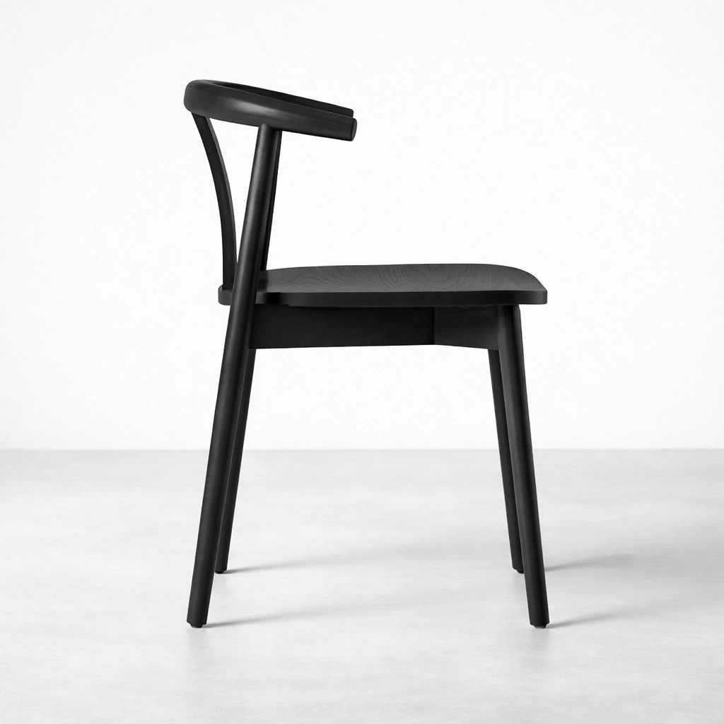 Finished in a smooth black polish, the chair reflects a refined, modern character while preserving the natural grain beauty of teakwood. Its minimalist silhouette allows it to complement dining tables, cafes, restaurants, and contemporary homes seamlessly.