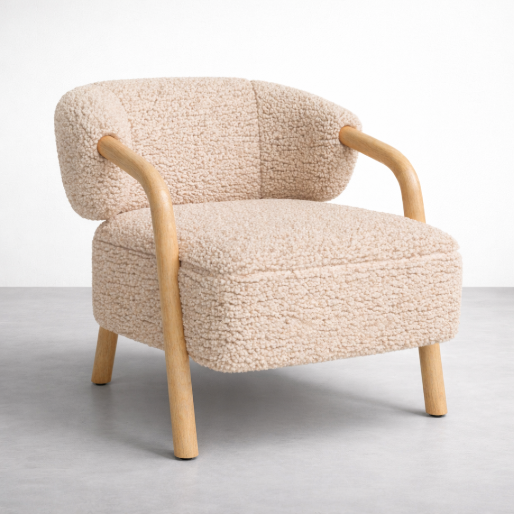 Be the first to review “Elara Beige Boucle Accent Chair in Steam Beechwood | INTERIORZE”