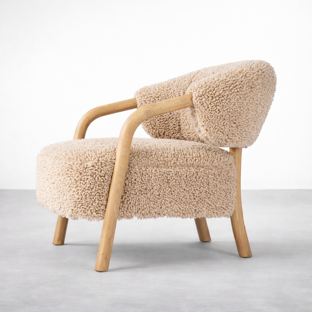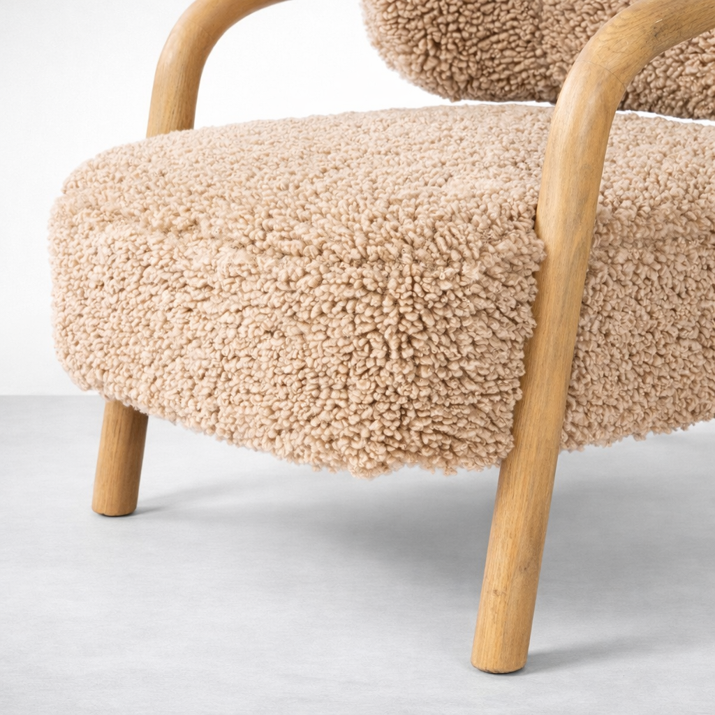 Elara Beige Boucle Accent Chair in Steam Beechwood | INTERIORZE