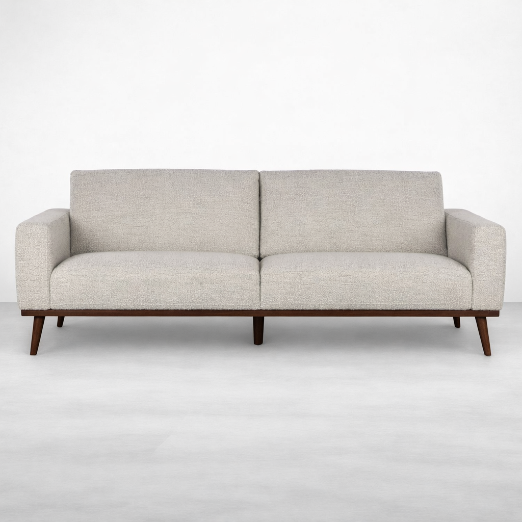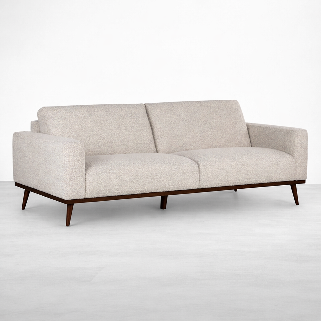 INTERIORZE Beige Fabric Sofa with Teakwood Base?
