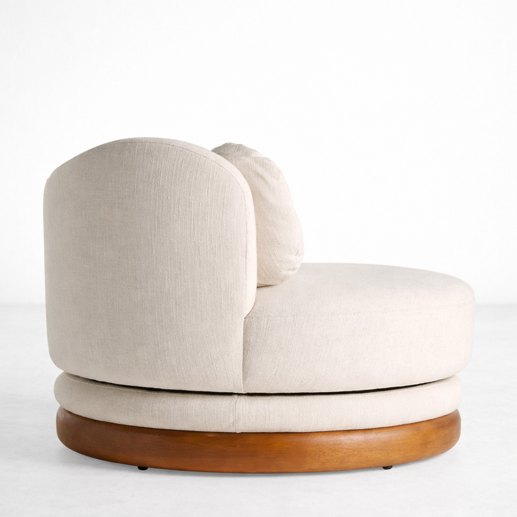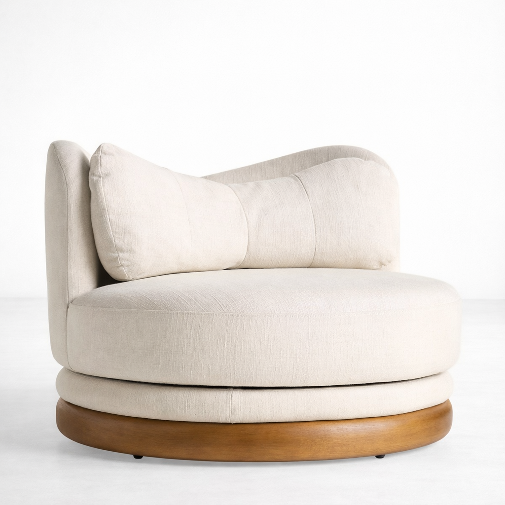 INTERIORZE Beige Round Swivel Lounge Chair with Teakwood Base?