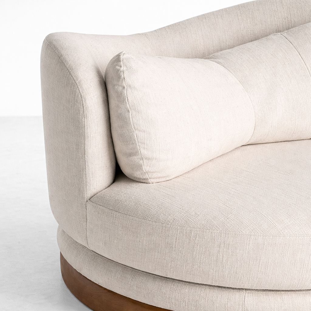 Inside, a kiln-dried solid teakwood base and frame provide strength and a quiet revolving mechanism that lets you swivel smoothly to face any direction. High-density foam cushioning offers long-lasting comfort, while the rounded plinth base in a rich teak polish grounds the design and adds natural warmth.