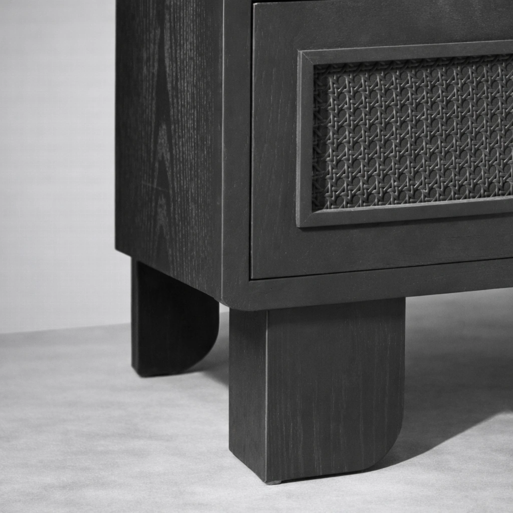 This product is made to order. Custom size, finish tone, and shelf or drawer options may be available based on requirement. Since each piece is crafted in natural wood and cane, slight variation in grain and texture may occur and makes every unit unique.