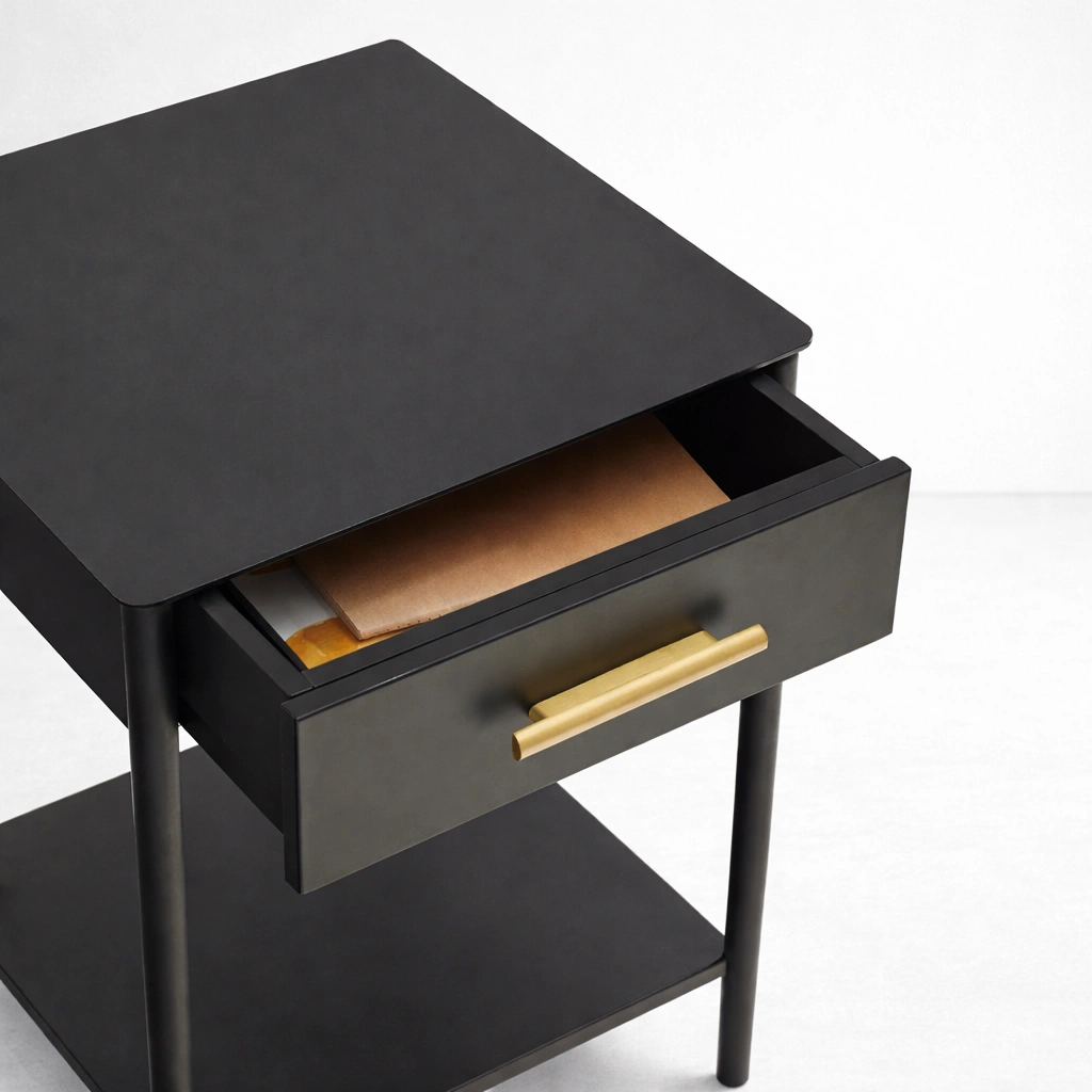 The clean lines, slim legs, and understated metallic handle give this piece a modern and elegant character that works well in contemporary, minimalist, urban, and luxury-inspired interiors. The black finish adds depth and versatility, making it easy to pair with a wide range of bed designs, wall tones, and bedroom décor themes.