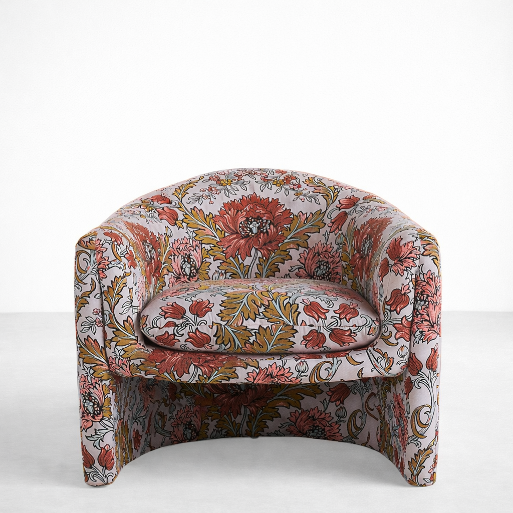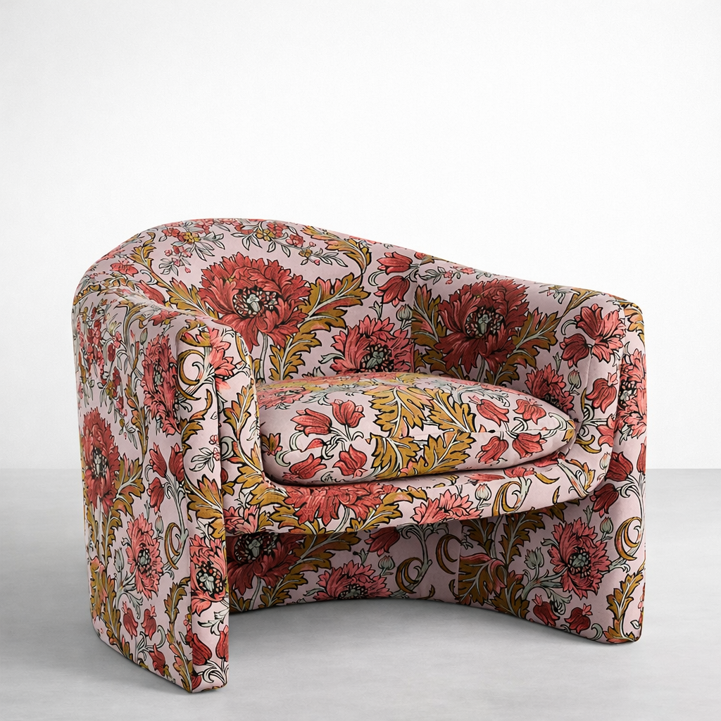 Style: Modern tub chair, statement floral