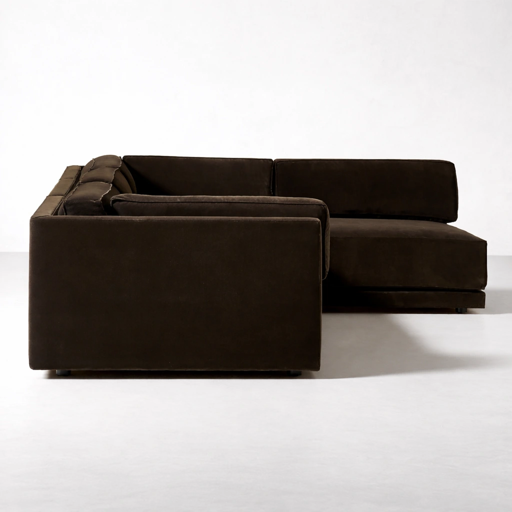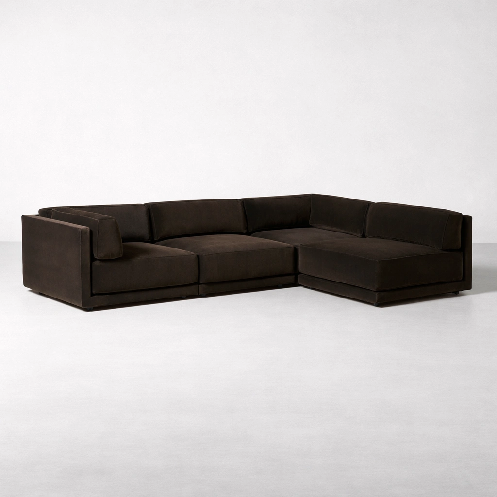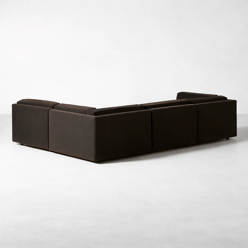 Because every home is different, this sectional is made to order. You can choose the chaise direction, overall length, seat depth, and fabric option that suits your lifestyle. If you need extra modules for a larger family space or a more compact version for an apartment, we can tailor it. Comfort preferences can also be adjusted, so the sofa feels right from the first day. brown modular L-shape sectional sofa