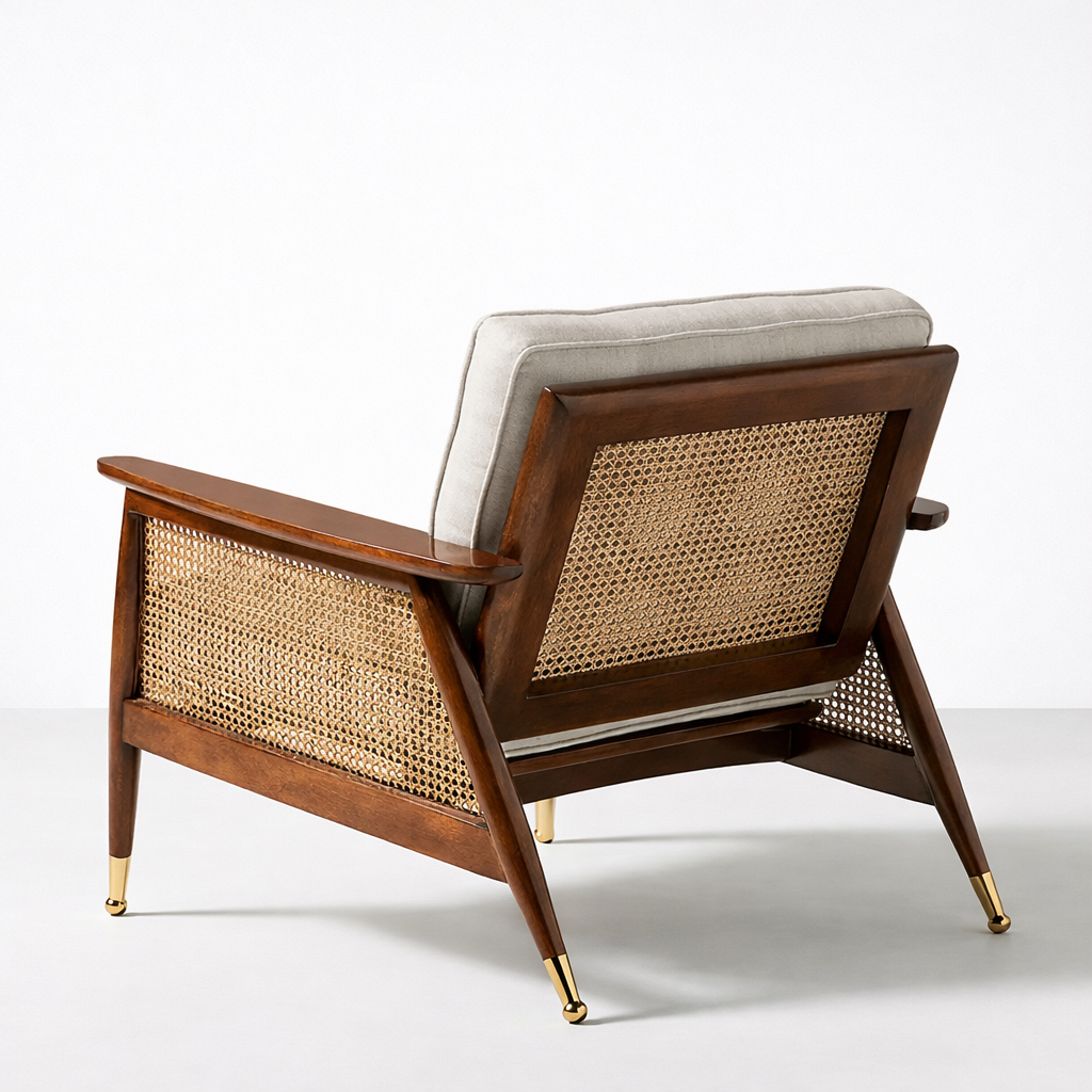 Designed for modern living rooms, reading corners, bedrooms, and office lounge spaces, the Caspian Teakwood Cane Chair brings a luxury accent to any setting. The gold metal leg caps complete the look with a premium finish and added durability.