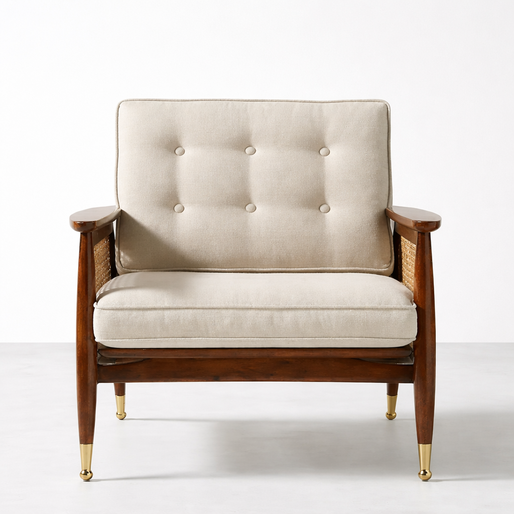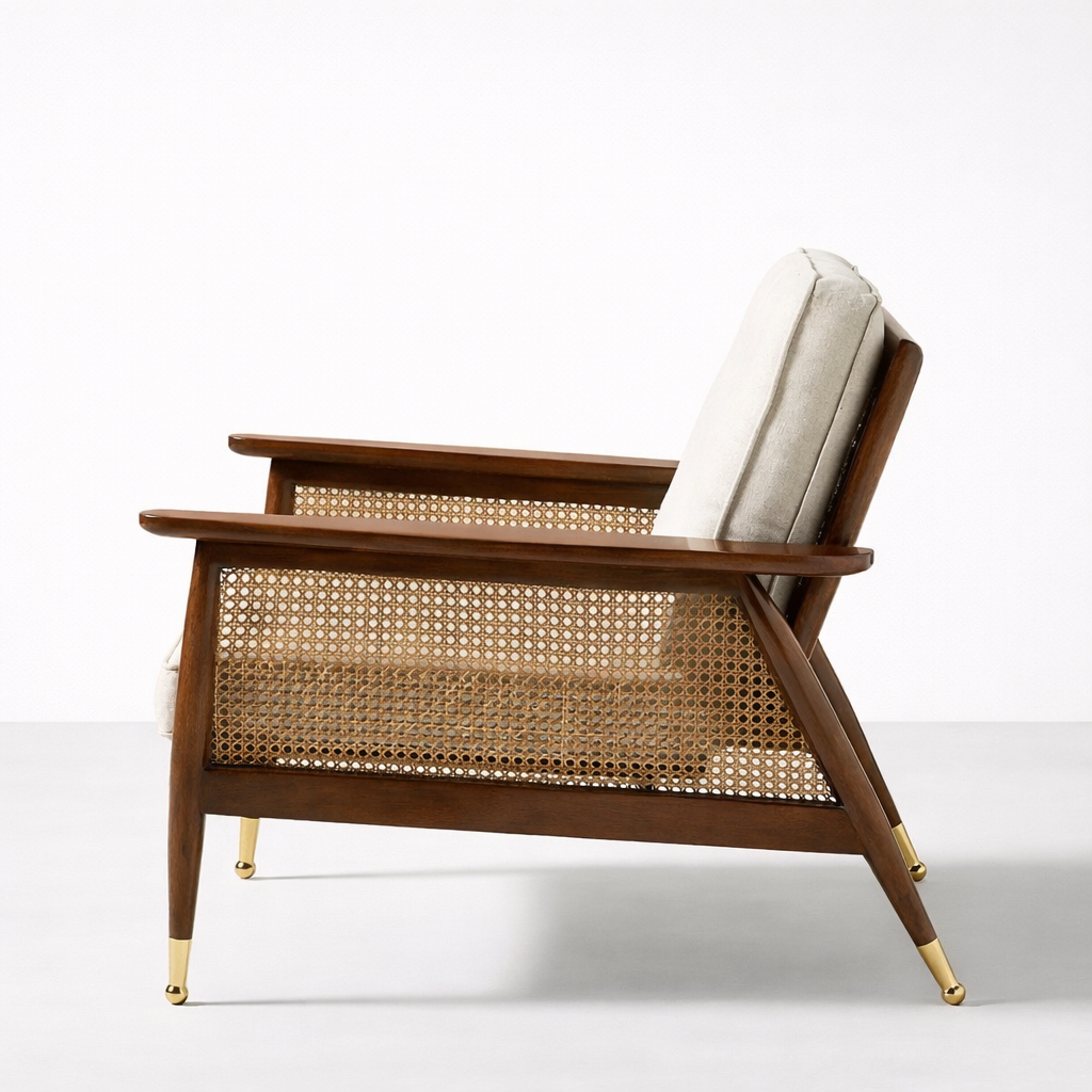 Caspian Teakwood Cane Accent Armchair – Cream Fabric | Gold Leg Caps?