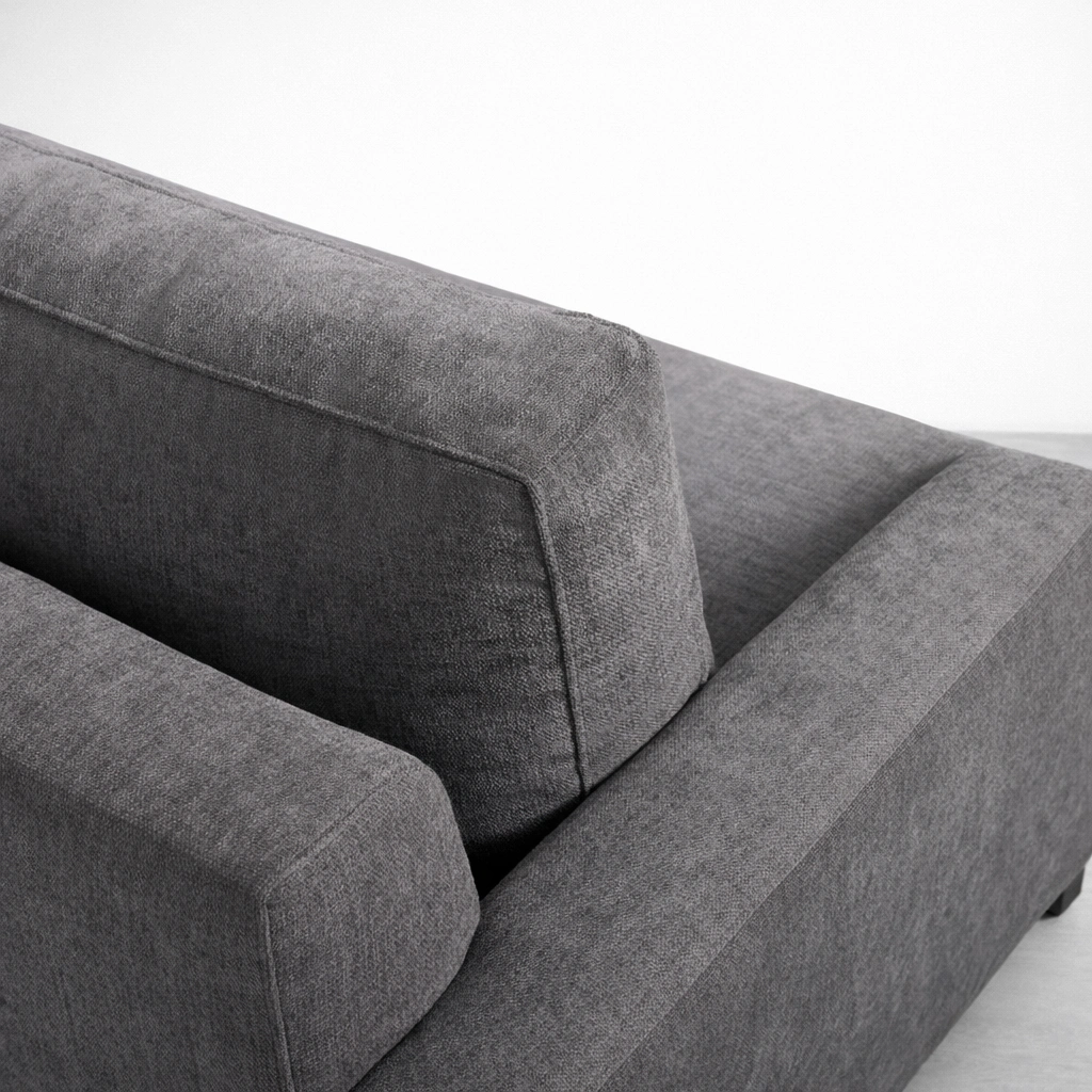 • Charcoal grey sectional sofa fabric detail and clean stitching by INTERIORZE