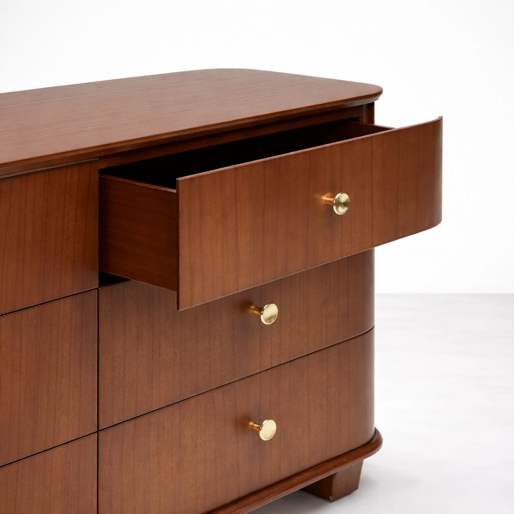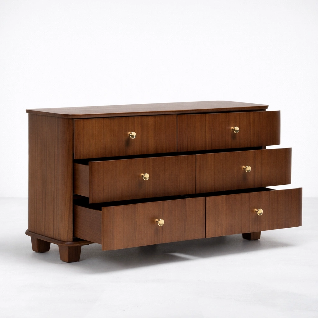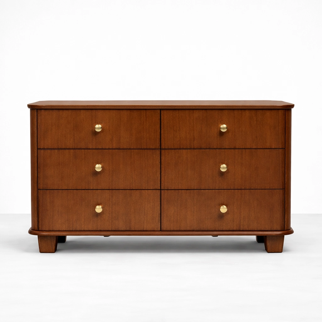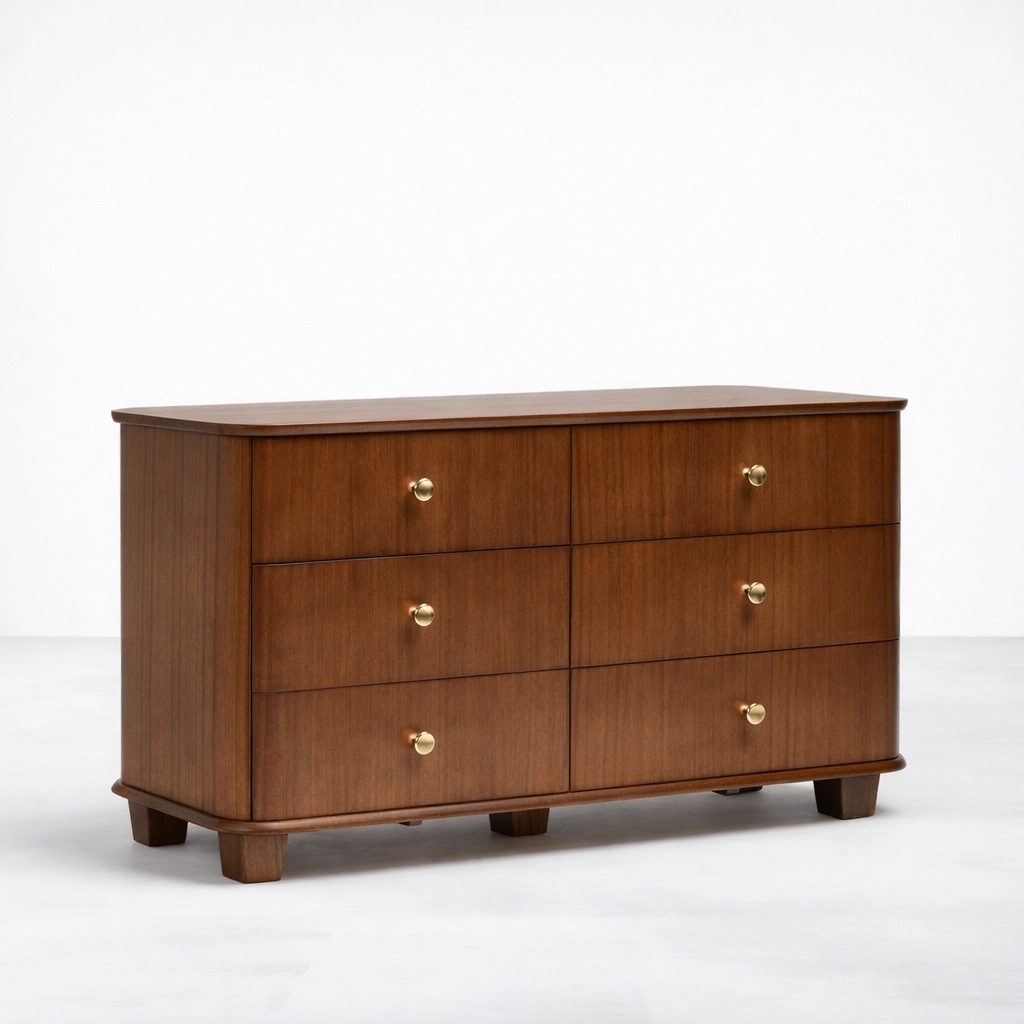 curved teak wood 6 drawer dresser