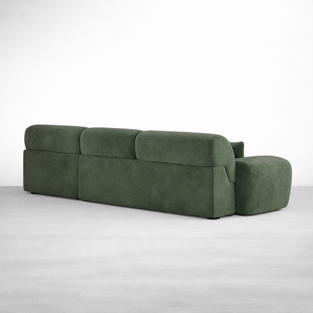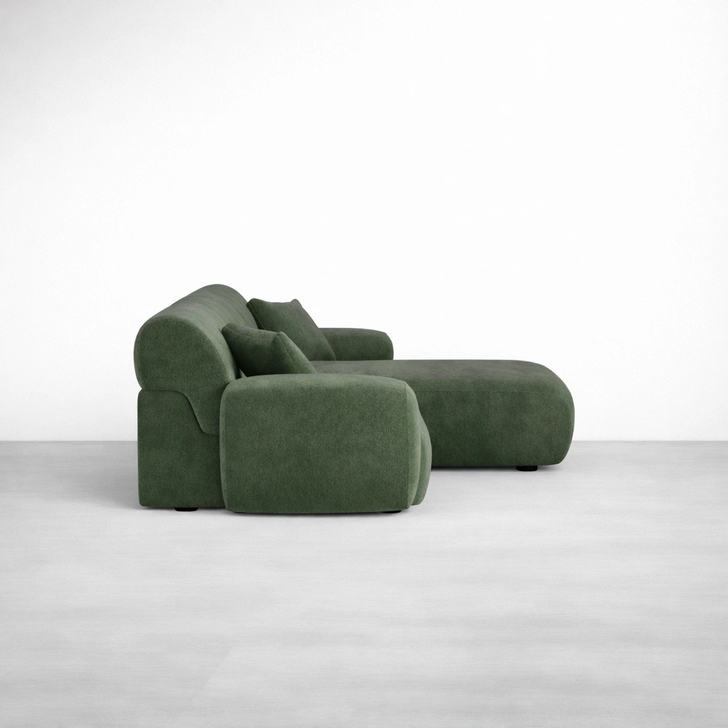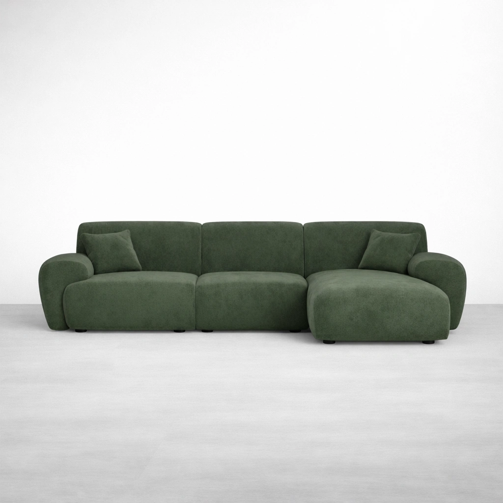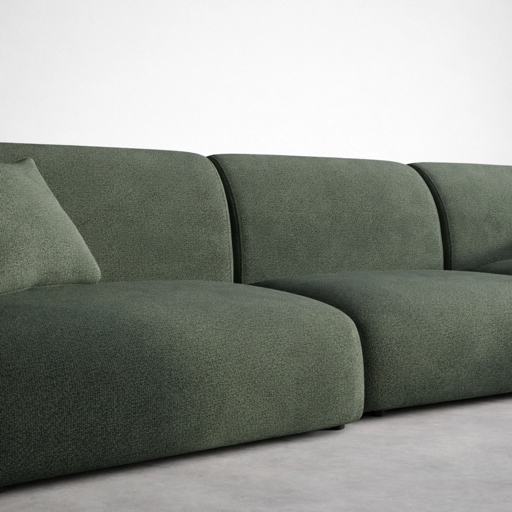 This sofa is made to order, so you can choose a layout that fits your room and your daily routine. Whether you want a compact chaise setup for smaller spaces or a wider modular configuration for family seating, we can tailor the measurements and modules. Fabric options, cushion feel, and detailing can also be adjusted so the final piece feels personal and practical green modular chaise sofa.