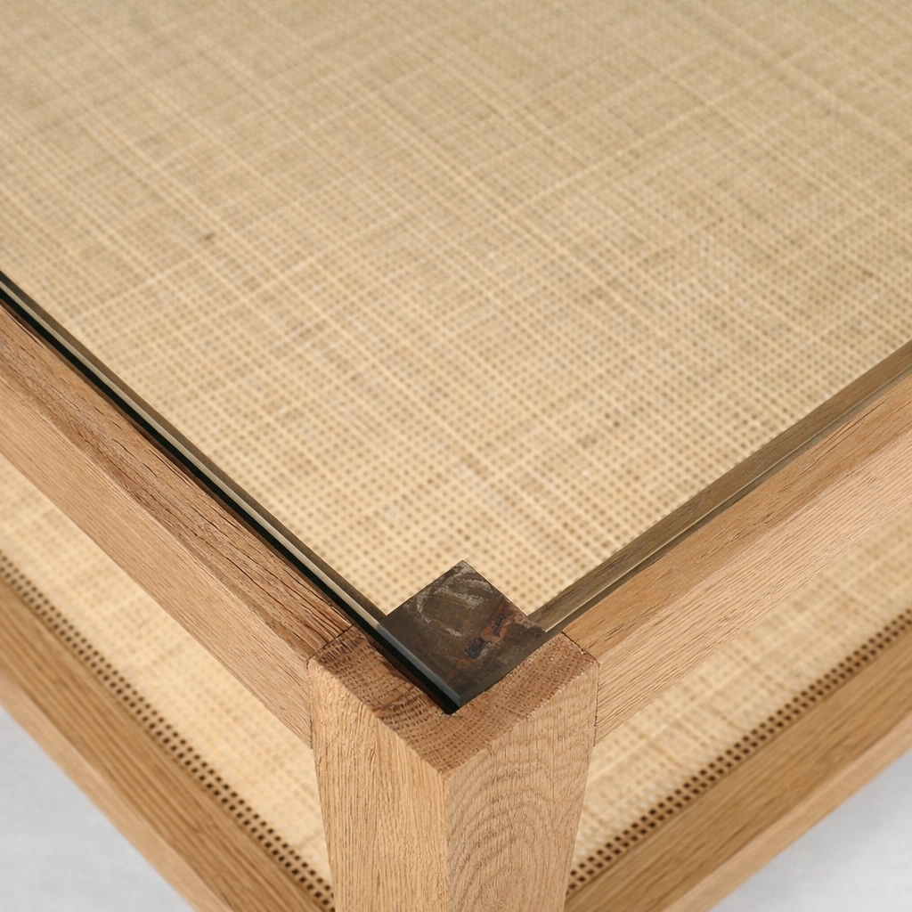 Its rectangular form makes it easy to place within a wide range of living room layouts, and the combination of glass, wood, and cane creates a calm and balanced presence that works beautifully in modern, natural, and contemporary interiors. The ashwood frame highlights the beauty of natural grain, while the cane shelf introduces a handcrafted look that softens the overall design.