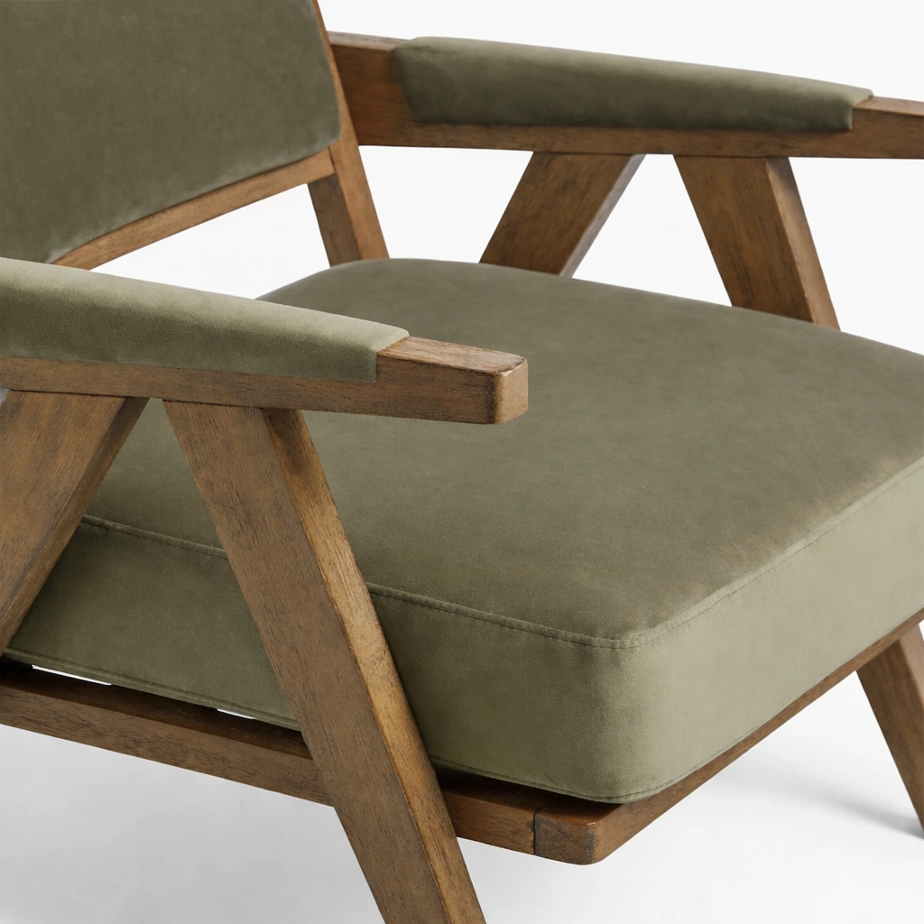 This arm chair blends easily with modern, contemporary, mid-century, and minimal interiors. The natural wood character pairs beautifully with the muted upholstery, creating a calm and versatile furniture piece that complements a wide range of décor styles.