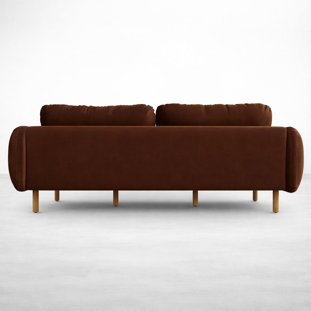 The Brown Velvet 3 Seater Sofa is designed for homes that value comfort with a clean, balanced look. The soft velvet finish brings warmth and depth to the room, while the rounded arms and generous cushions keep the silhouette simple and welcoming. At INTERIORZE, we build this sofa on a seasoned hardwood internal frame and pair it with teakwood legs to support everyday use with dependable strength.