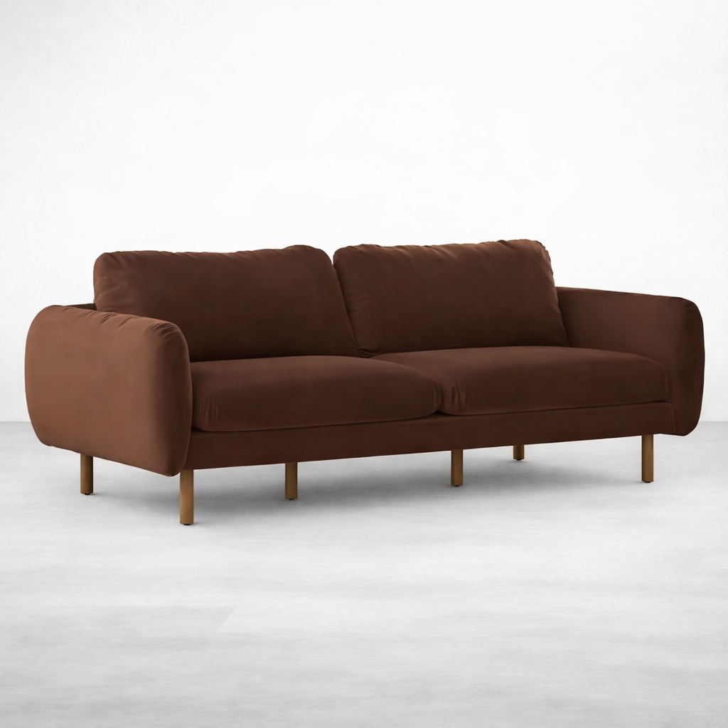 This Brown Velvet 3 Seater Sofa is made to order by INTERIORZE. You may request: