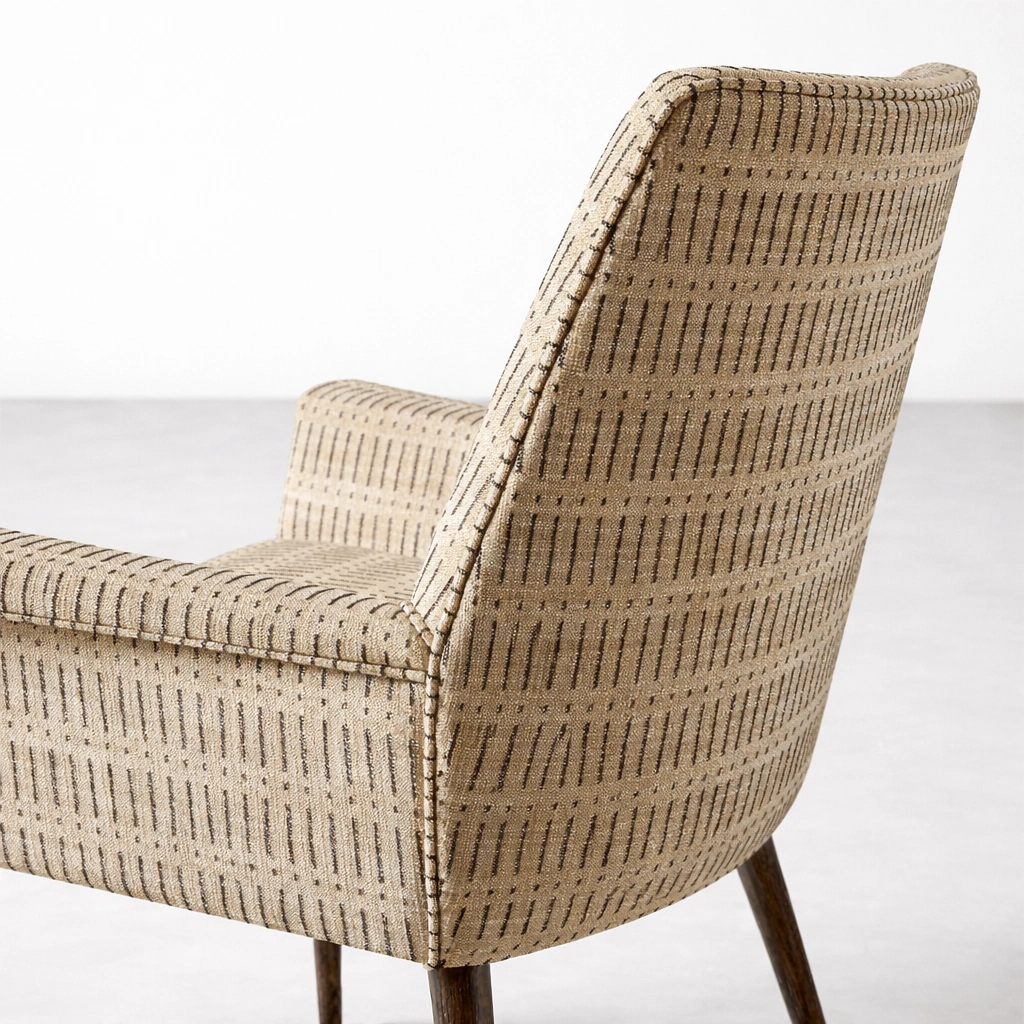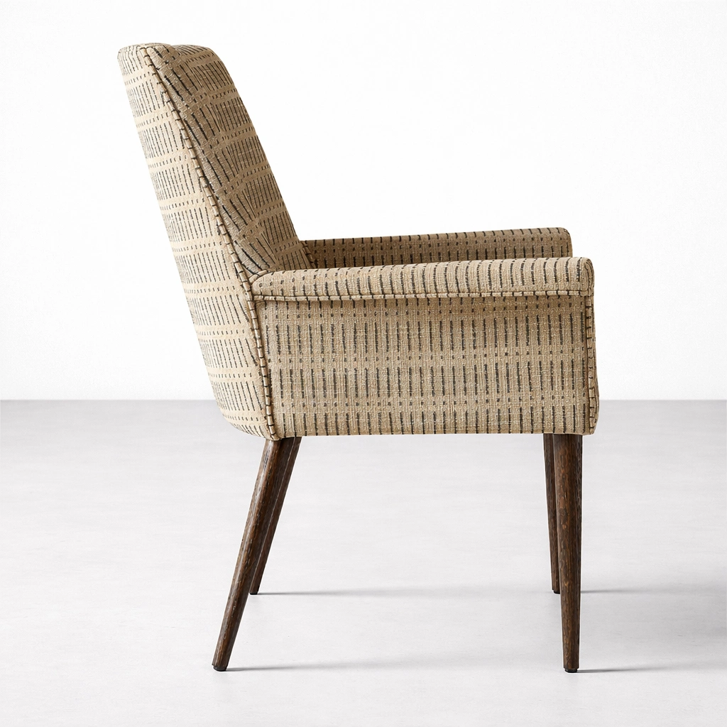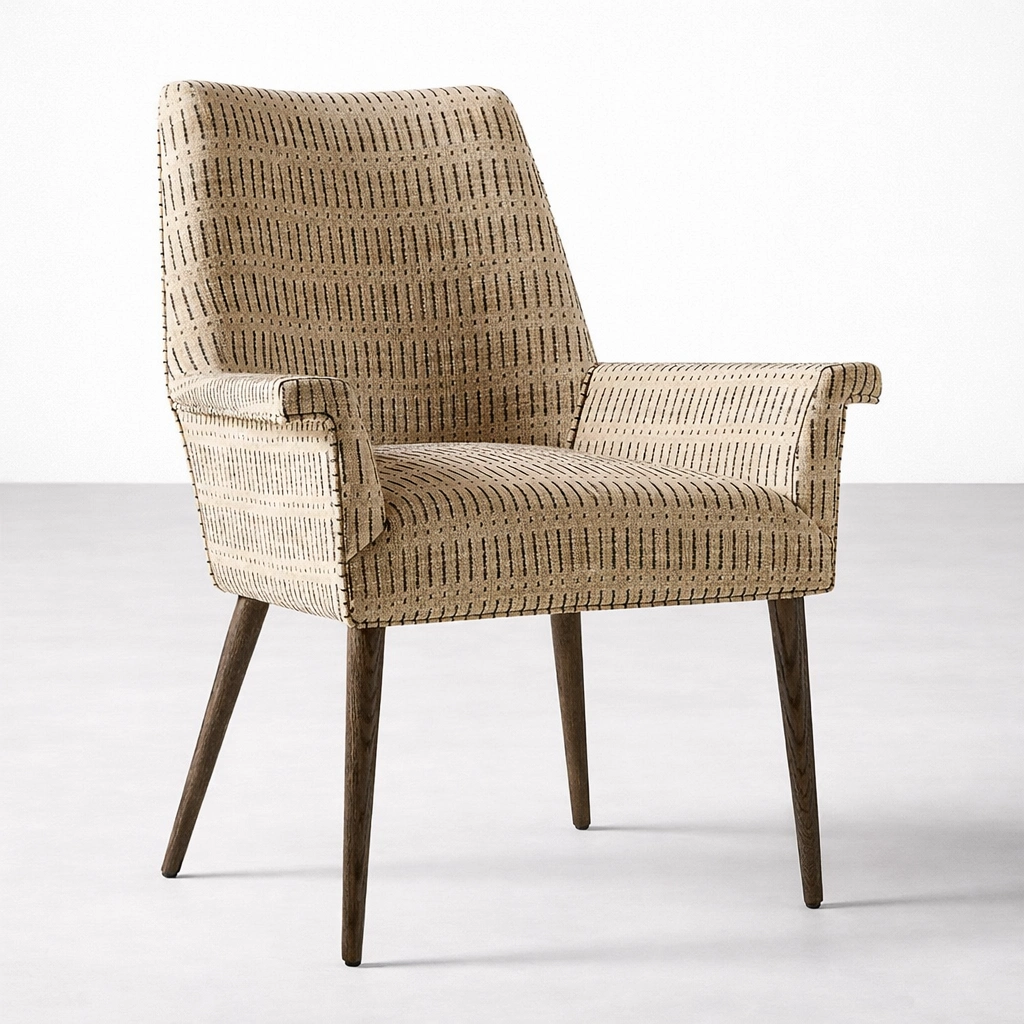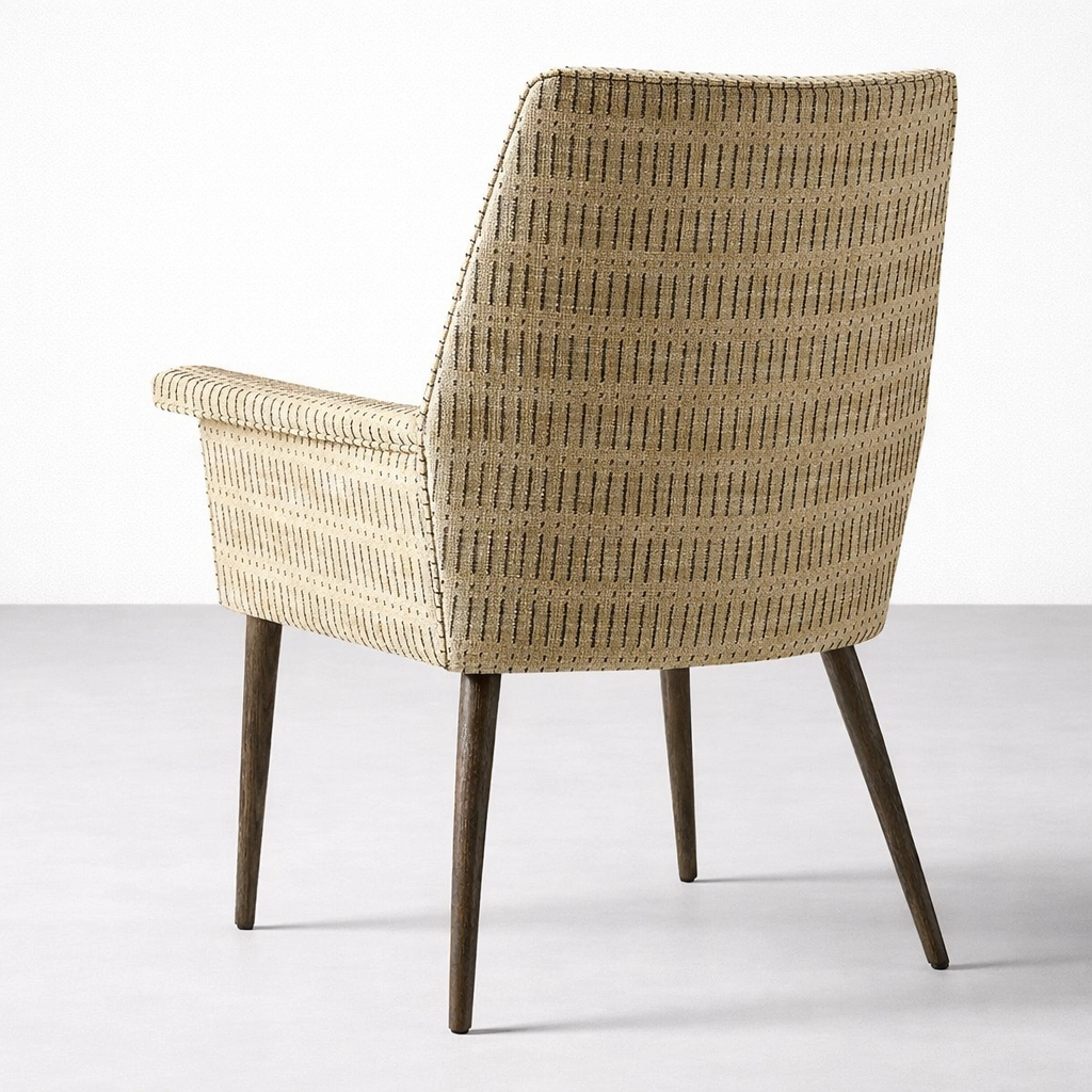 At INTERIORZE, we humbly design furniture that balances craftsmanship, comfort, and timeless appeal. The Calvora Upholstered Arm Dining Chair is thoughtfully crafted with a solid internal wooden structure, premium patterned upholstery, and sturdy teakwood legs to create a refined and inviting dining experience.