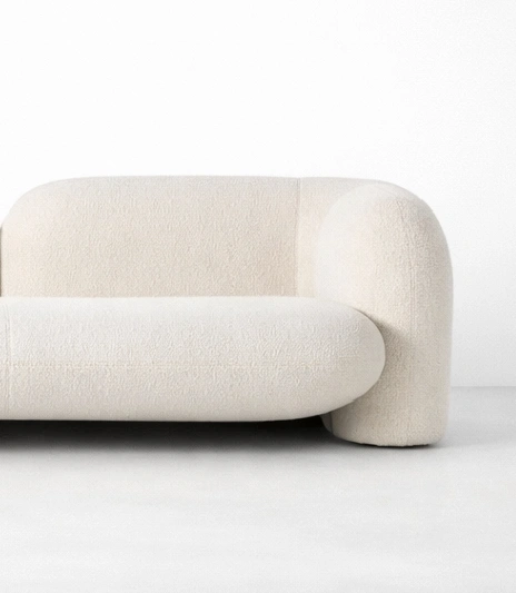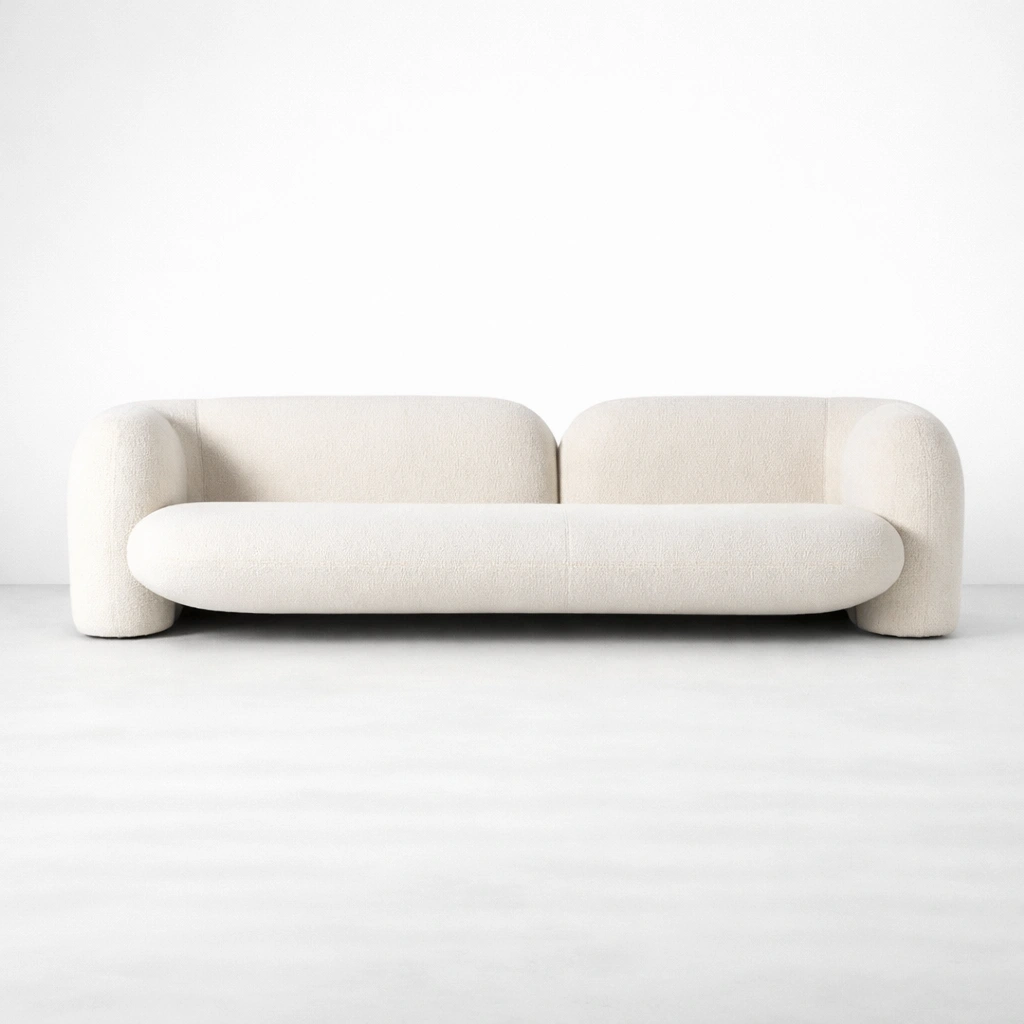 The INTERIORZE Cloudline ivory bouclé sofa is created for homes that prefer softness without excess. Its rounded profile and gently curved arms bring a calm, sculptural presence to living rooms, lounges, and studio spaces. The ivory bouclé upholstery adds a warm, textured look that feels inviting in both minimal and layered interiors .