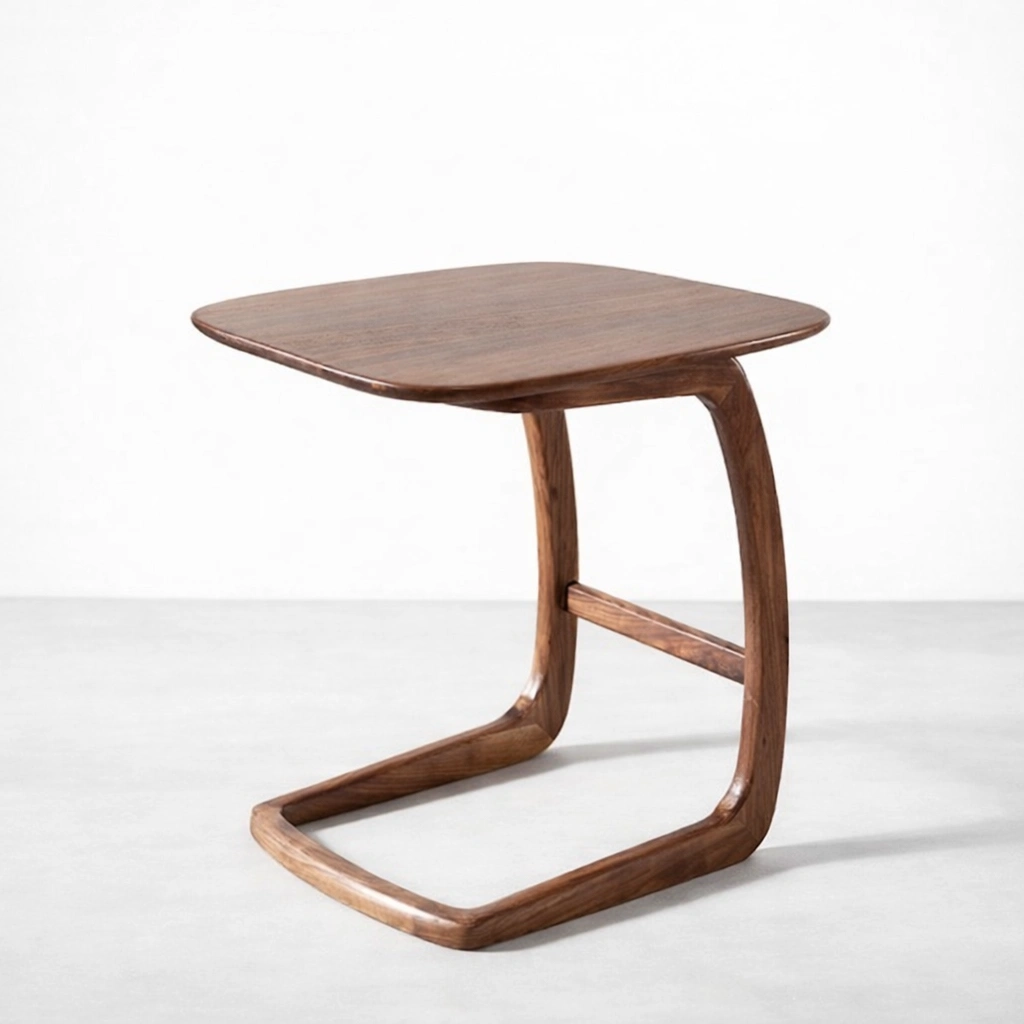 Handcrafted teakwood side table with rounded square top and cantilever base by INTERIORZE FLOW Cantilever Side Table Col...