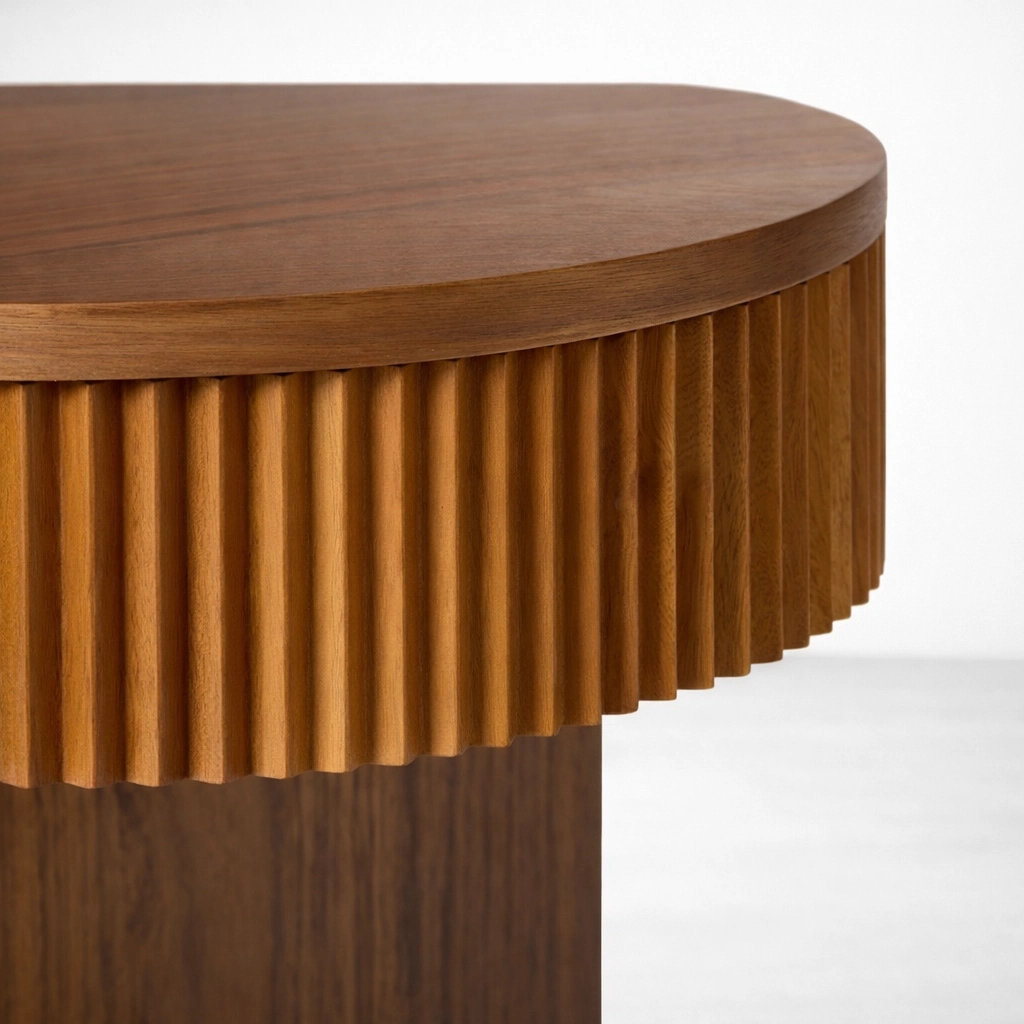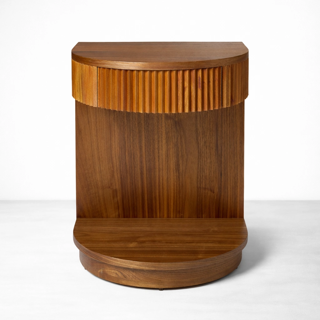 The INTERIORZE Fluted Teakwood Bedside Table with Drawer and Open Shelf is a thoughtful bedroom piece created for those who prefer furniture with warmth, texture, and a calm visual presence. Designed with a smooth curved front profile, a beautifully fluted drawer fascia, and an open lower shelf, this bedside table offers a balanced mix of detail and practicality.