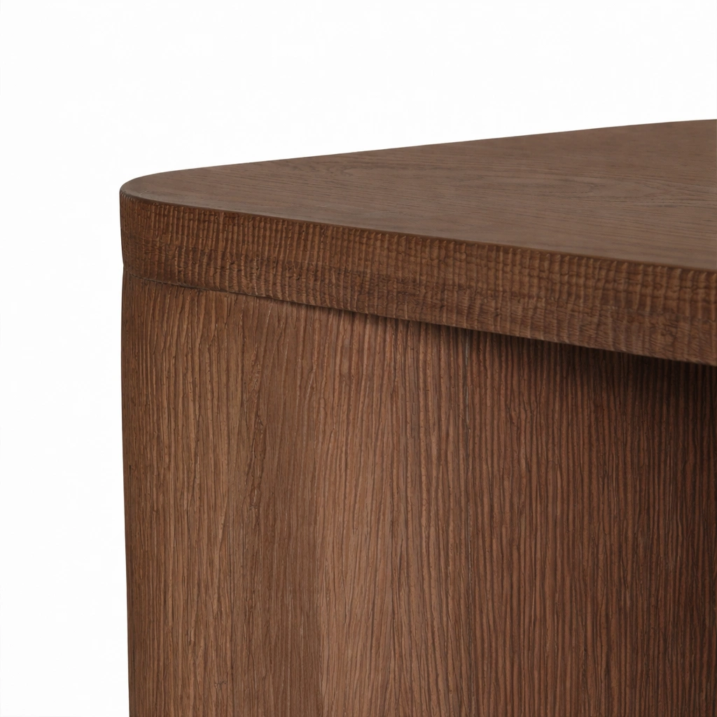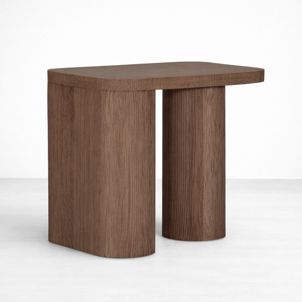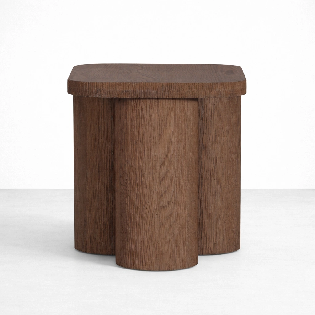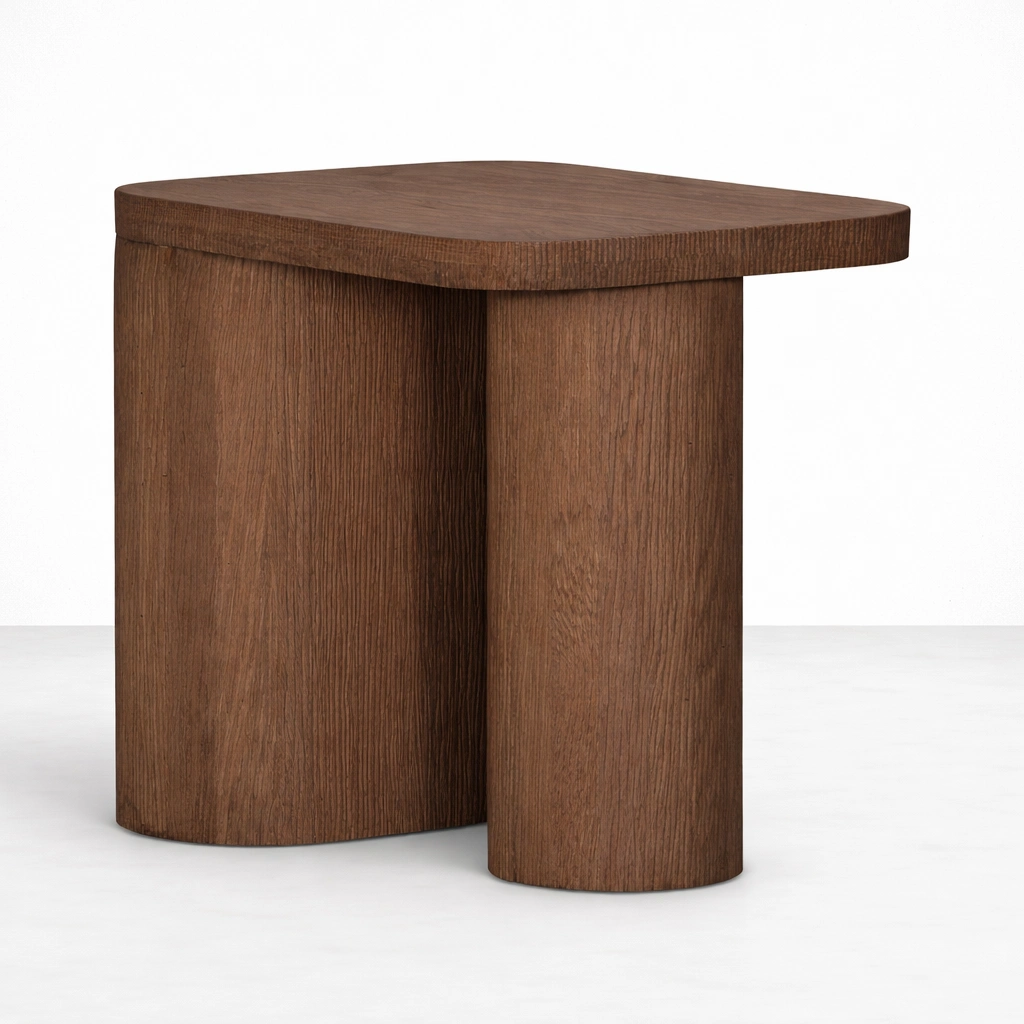 The INTERIORZE Forma Teakwood Side Table is a thoughtfully crafted piece designed for spaces that appreciate simplicity, warmth, and strong form. Made in teakwood, this side table features a rounded rectangular top supported by bold cylindrical legs that create a balanced and architectural look.