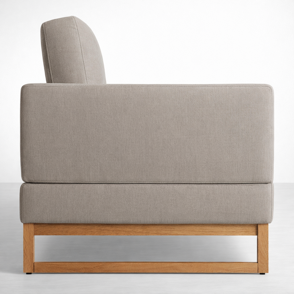 The Teakwood Sofa from INTERIORZE is designed for people who prefer simple lines, durable materials, and a calm presence in the living room. It is crafted with a solid teakwood internal frame, finished with a teakwood base, and upholstered in a soft grey fabric that pairs easily with most interiors. We focus on balanced comfort and reliable construction, so the sofa feels steady and supportive in daily use.