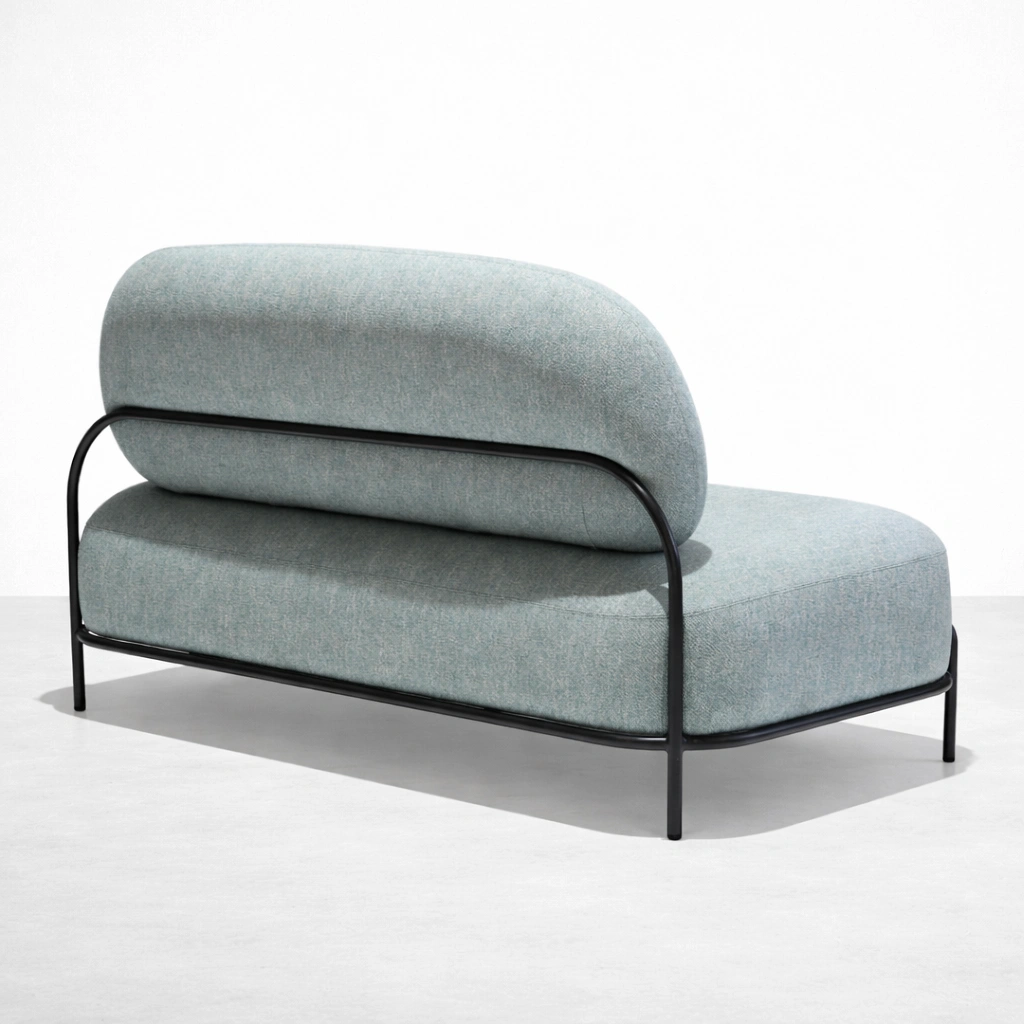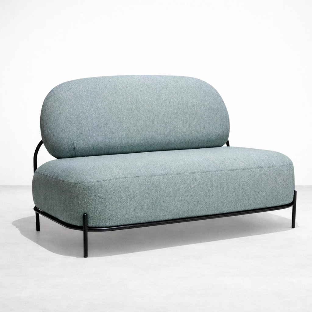 The INTERIORZE Nori seafoam 2 Seater Sofa is designed for spaces that prefer a quiet, modern look with soft comfort. The rounded back cushion supports relaxed seating, while the slim metal outer frame keeps the form visually light. Its seafoam upholstery adds an easy freshness that works well with neutrals, wood tones, and minimal interiors seafoam 2 Seater Sofa.