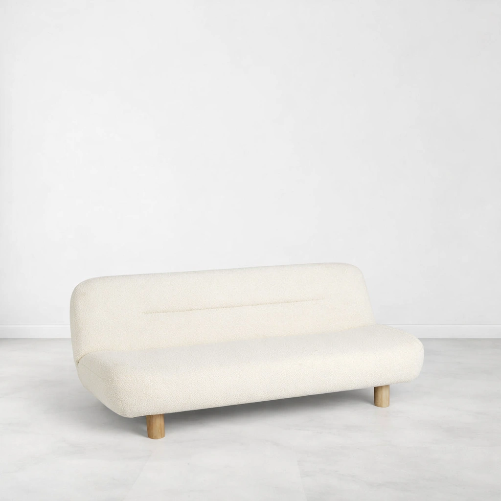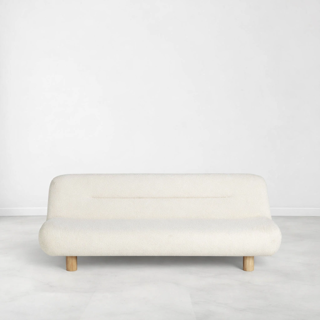 The INTERIORZE Nube ivory bouclé sofa is designed for homes that prefer a quiet, modern look with a soft finish. Its rounded form, low profile, and clean back make it easy to place in open living rooms, studio spaces, and contemporary lounges. The ivory bouclé upholstery adds a warm texture that feels inviting without needing bold patterns ivory boucle sofa.