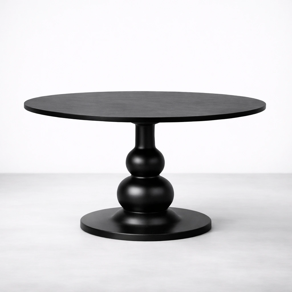 This round dining table features a smooth black finish that gives it a calm, grounded character suitable for modern, contemporary, and transitional interiors. The balanced circular top encourages easy conversation and a more intimate dining experience, making it especially suitable for family meals, compact dining areas, and design-led spaces.