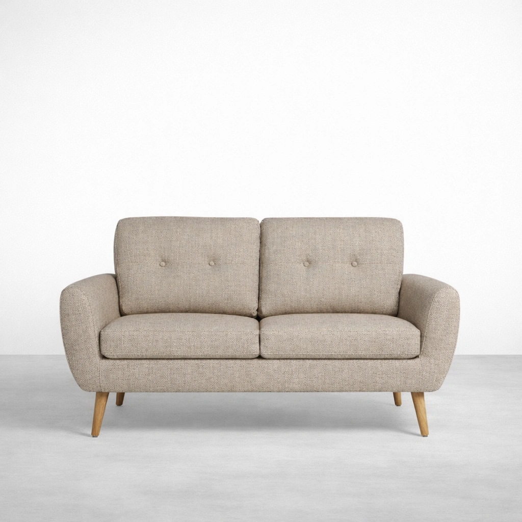 The INTERIORZE Soren beige 2 seater sofa is designed for homes that want comfort with a calm, modern look. The gently rounded arms soften the silhouette, while the button-tufted back cushions add a subtle detail without feeling formal. Its warm oat-beige upholstery blends easily with wood, neutral palettes, and simple interiors, making it a dependable choice for everyday seating.