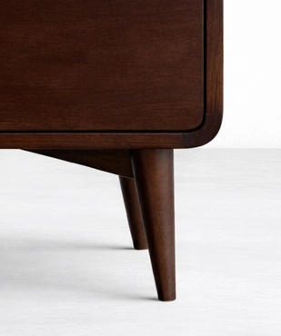 Supported by tapered wooden legs, this Teakwood bedside table has a balanced form that works beautifully in modern, minimal, mid-century inspired, and contemporary interiors. Its compact shape makes it suitable for bedrooms, guest rooms, studio apartments, and reading corners where useful furniture is needed without visual heaviness.