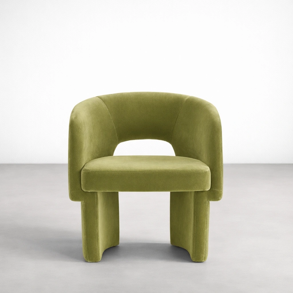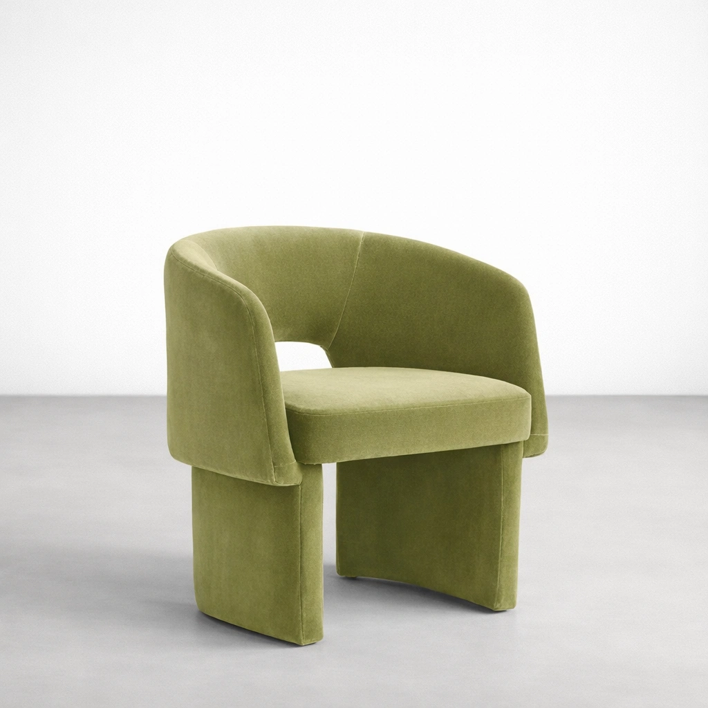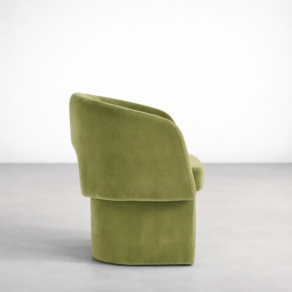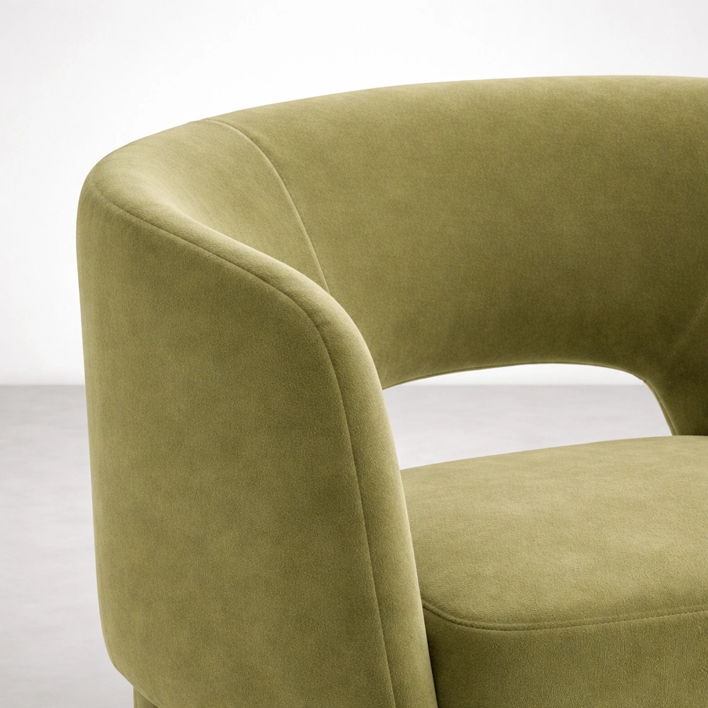 • Close up of olive green velvet upholstery on INTERIORZE dining chai