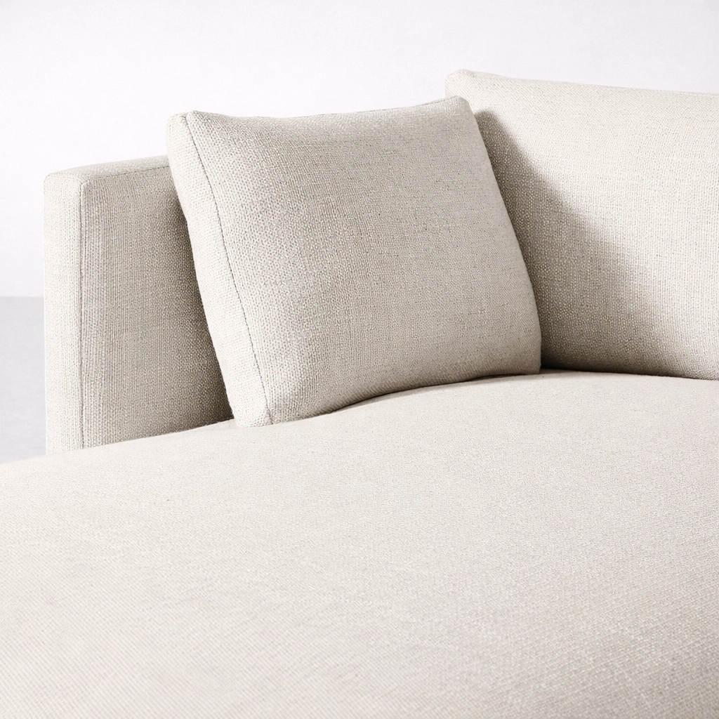• Close-up of INTERIORZE Haven ivory fabric upholstery and back cushion