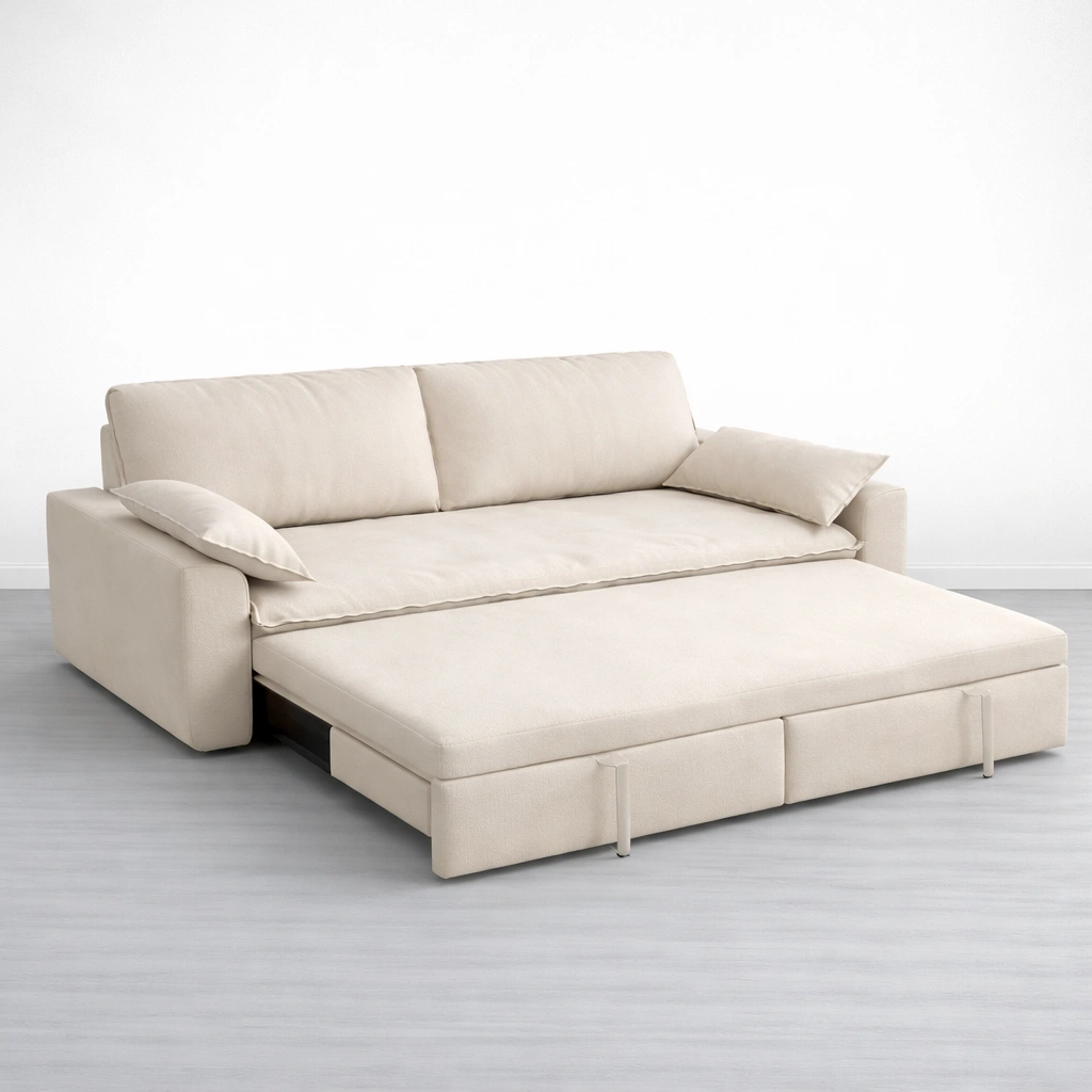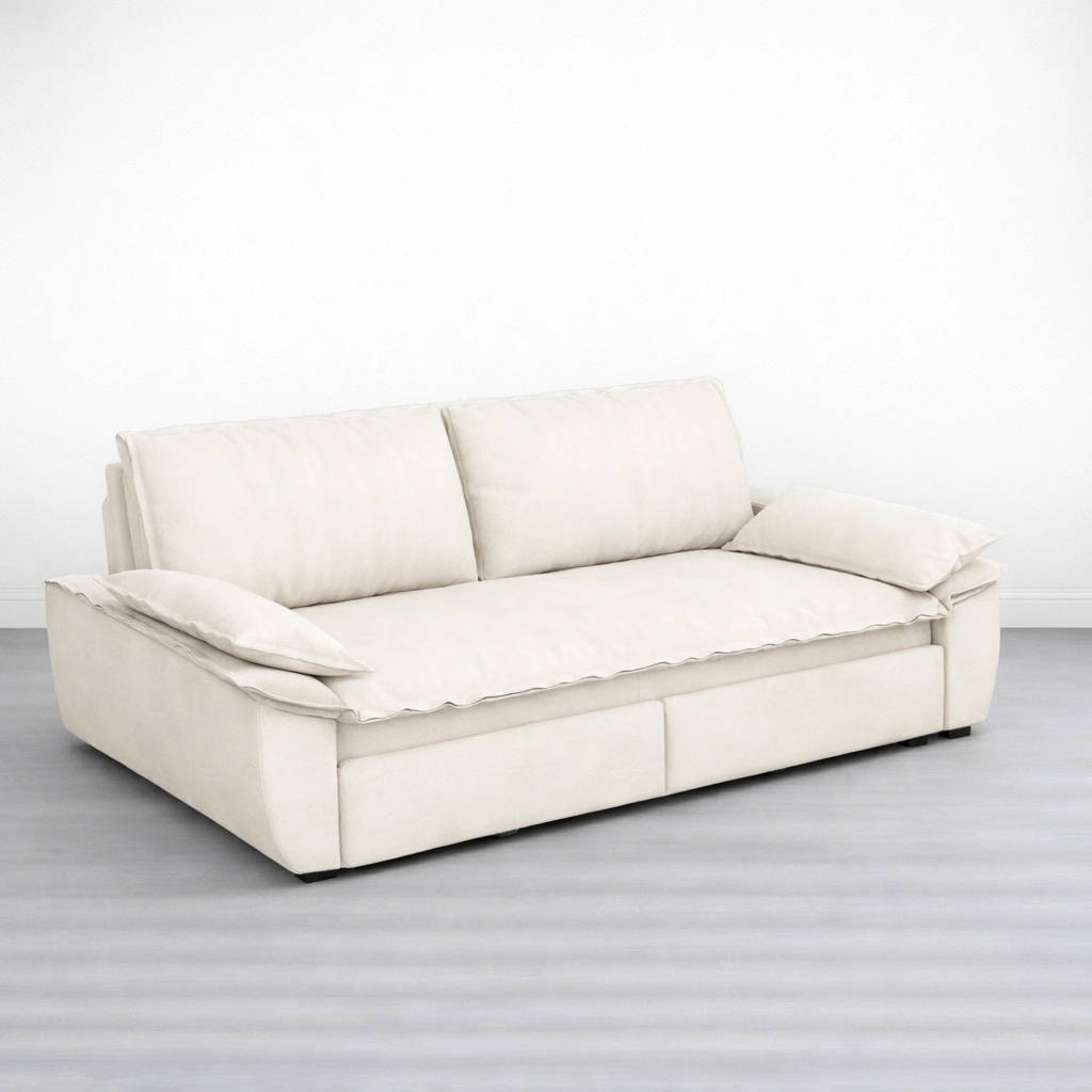 This ivory sofa cum bed is designed for homes that need both seating and sleeping without crowding the room. The clean shape, soft cushioning, and neutral upholstery keep the look light, while the pull-out mechanism gives you a full sleeping surface when guests stay over ivory sofa cum bed.