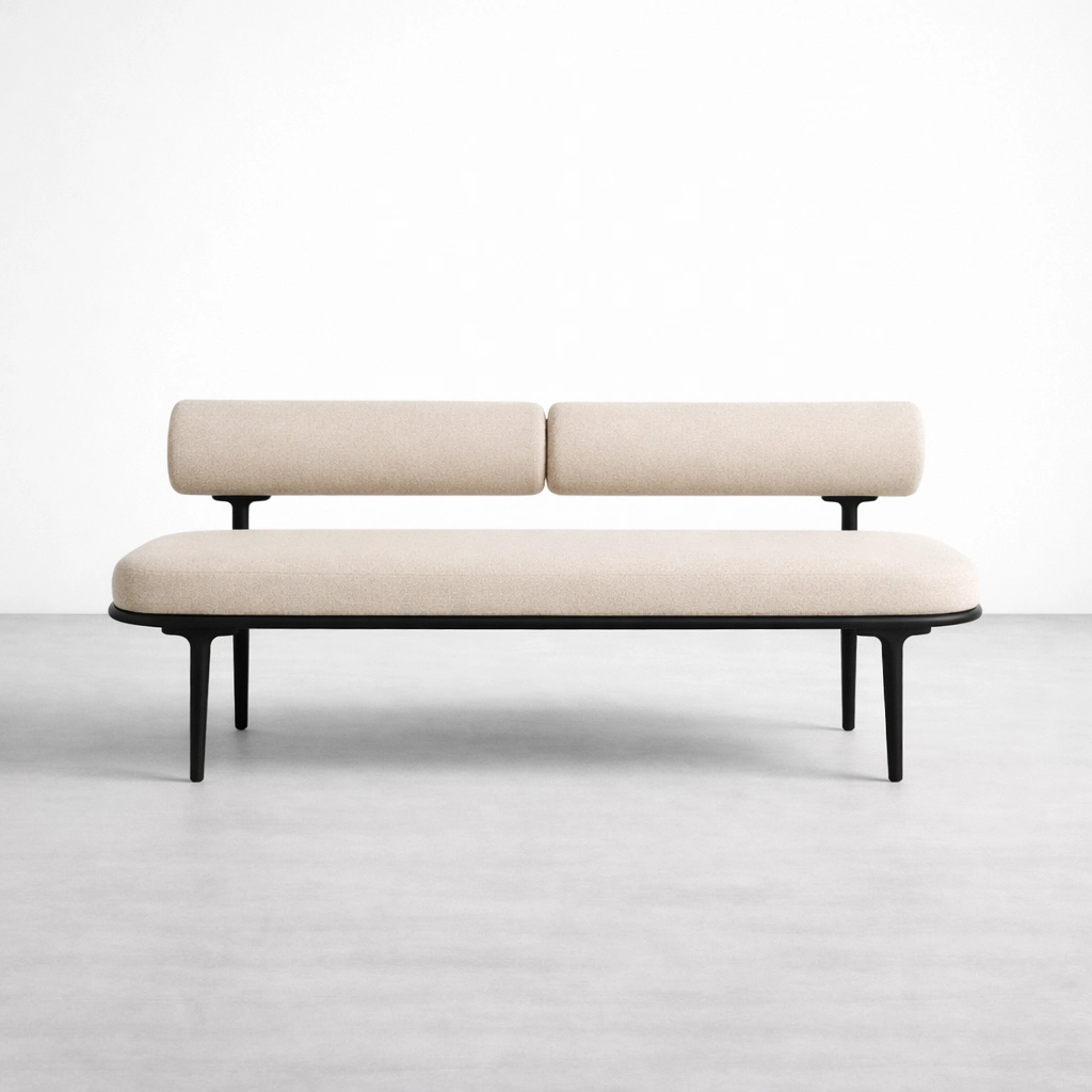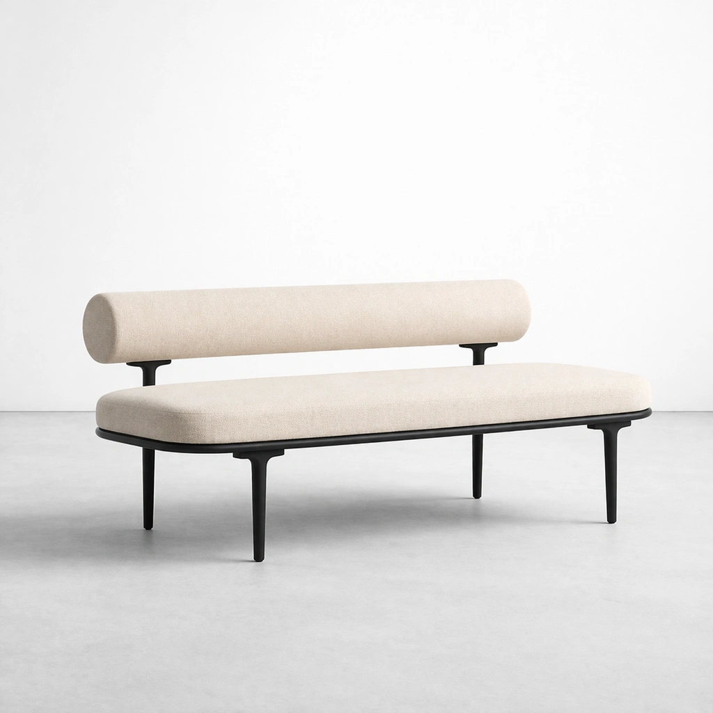 The ivory upholstered bench is thoughtfully designed for interiors that appreciate clean lines, soft comfort, and a modern furniture identity. With its smooth upholstered seat, rounded dual back cushions, and slim black support frame, this bench creates a balanced look that feels both minimal and inviting. The soft ivory tone adds warmth and lightness, making it easy to place in contemporary and elegant interiors.