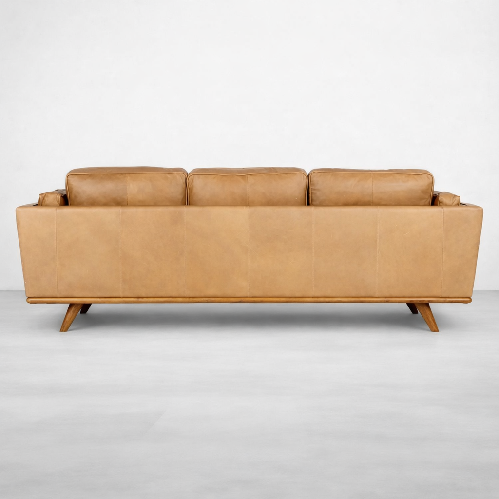 INTERIORZE Mid-Century Tan Leather 3 Seater Sofa