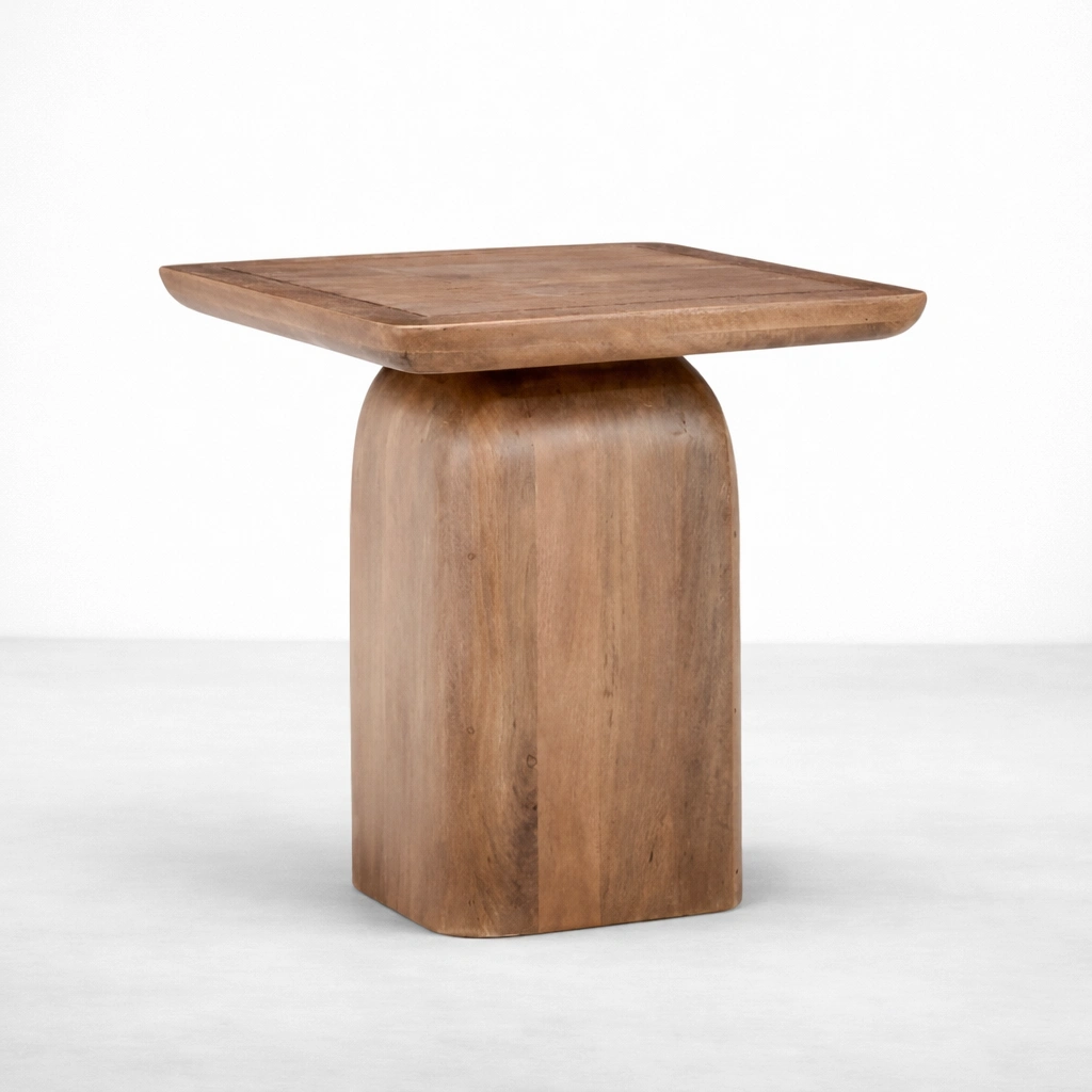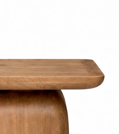 The INTERIORZE Monolith Curve Teak Wood Side Table is a thoughtfully crafted piece designed for interiors that appreciate strong form, natural warmth, and sculptural simplicity. Made in teak wood, this side table features a substantial square top paired with a bold rounded pedestal base, creating a design that feels grounded, modern, and quietly distinctive.