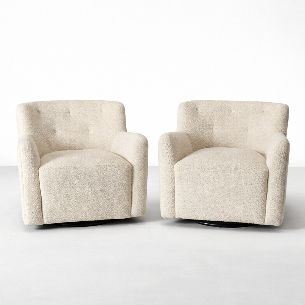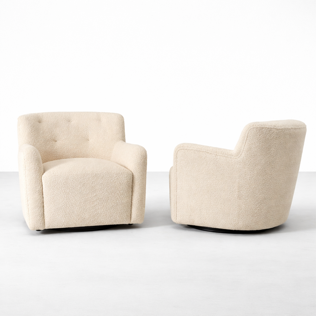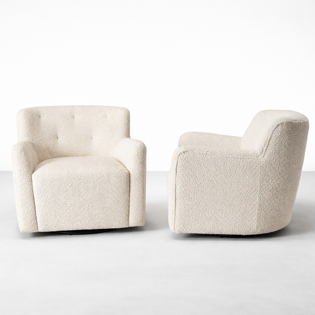 Nola Boucle Swivel Armchair in Cream | INTERIORZE?