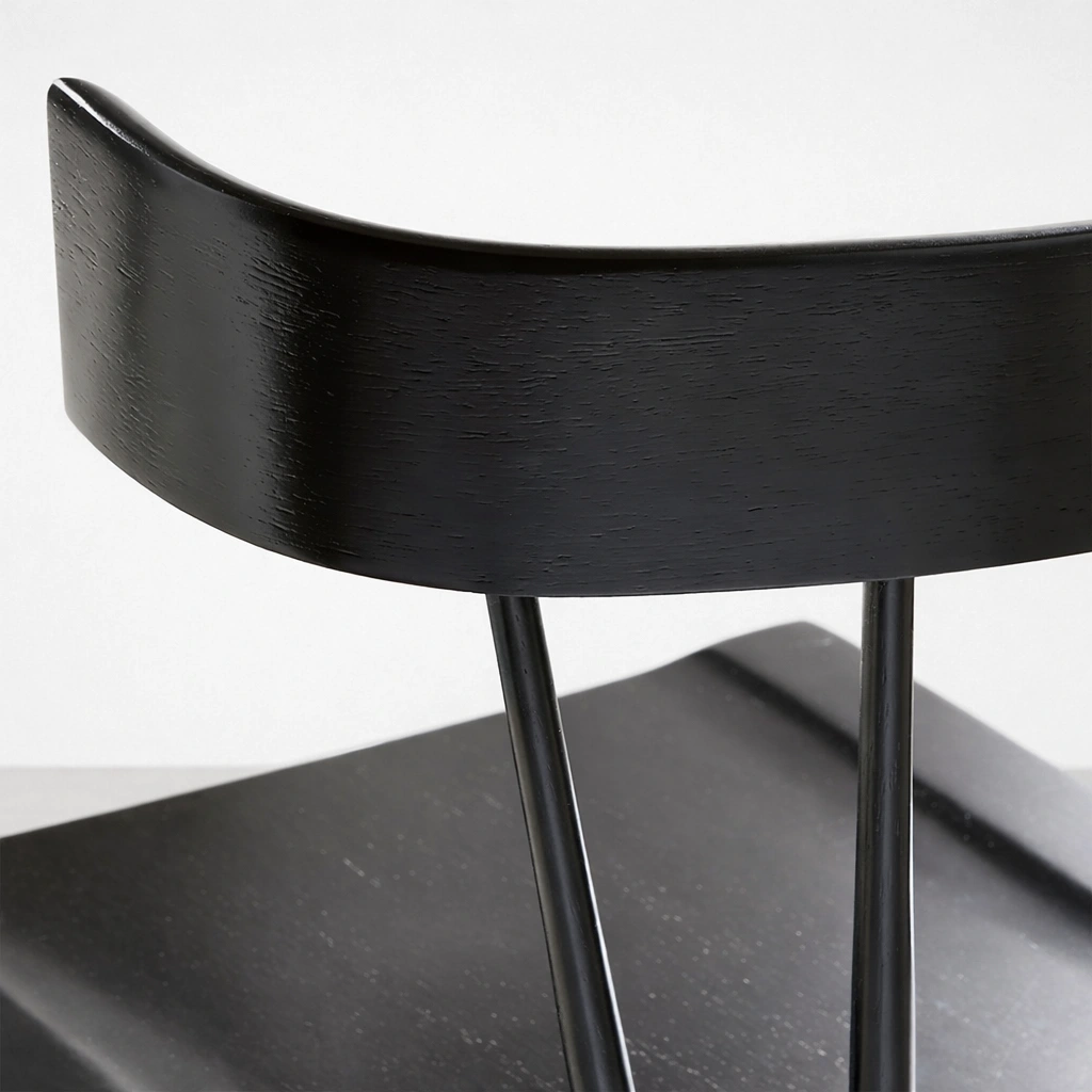 The matte black teak finish enhances the natural wood grain while offering a bold yet refined aesthetic. Its minimal silhouette allows it to pair beautifully with wooden, marble, or industrial style dining tables. Whether placed in a dining room, café, or studio apartment, the Norvik chair delivers understated elegance and reliable performance.
