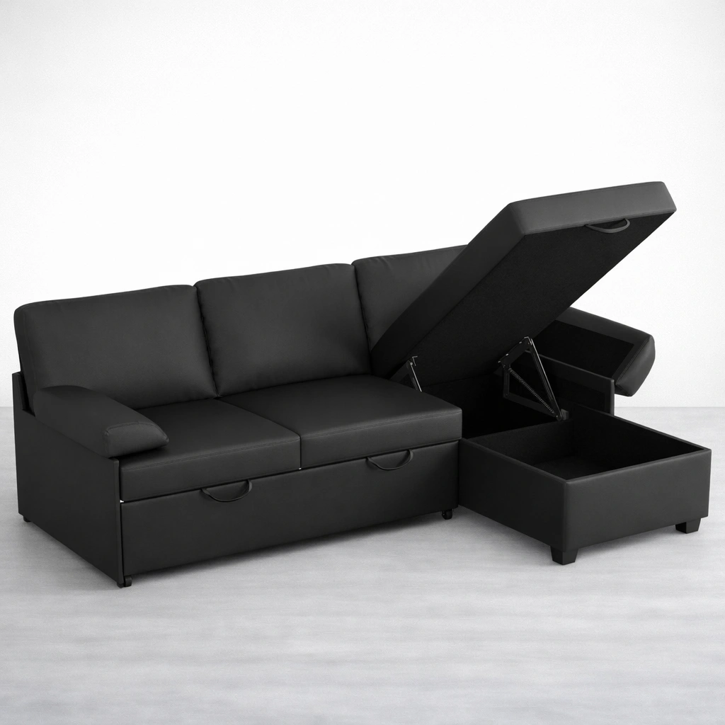 The INTERIORZE Nova Black L Shape Sofa Cum Bed is made for homes that need more from a single piece of furniture. It works as a spacious sectional for daily seating, and it converts into a wide sleeping surface when guests arrive. The pull-out platform opens smoothly, and the integrated storage helps keep essentials neatly arranged black l shape sofa cum bed.