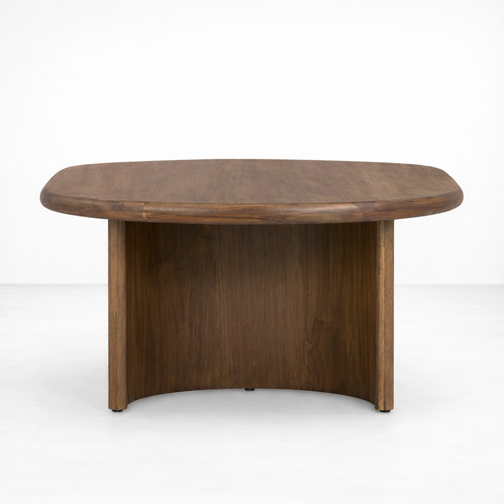 The Rovena Oval Teakwood Centre Table by INTERIORZE is thoughtfully designed for interiors that value clean form, natural material, and timeless presence. Crafted from premium teakwood, this centre table features a smooth oval tabletop paired with a distinctive dual-base design that gives it both visual strength and practical stability.