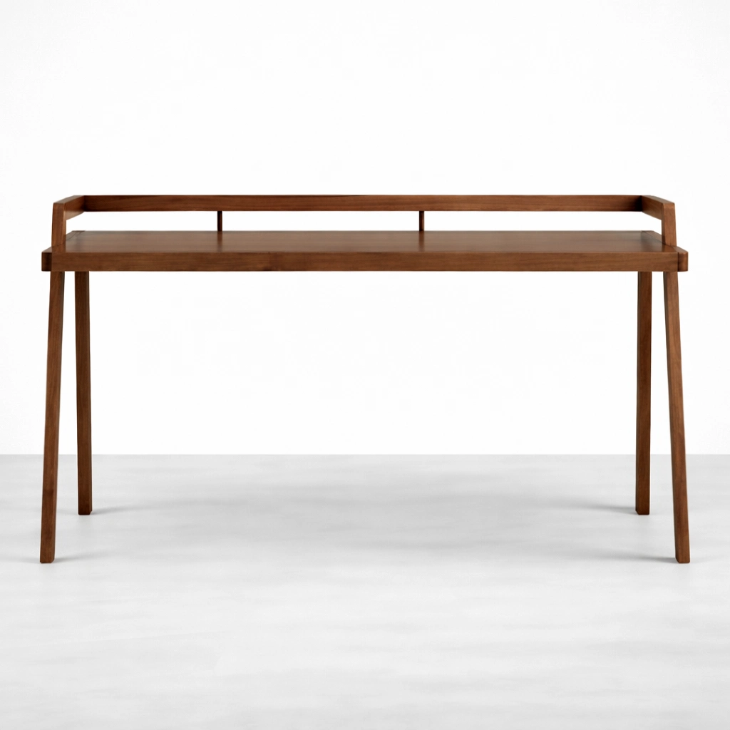 The warm walnut brown polish gives the piece a rich and timeless character that sits beautifully in bedrooms, study rooms, home offices, and reading corners. The tapered leg design keeps the overall form light, while the teak wood construction gives the desk a dependable and lasting feel. The design is simple enough for modern interiors yet warm enough for classic and transitional spaces.