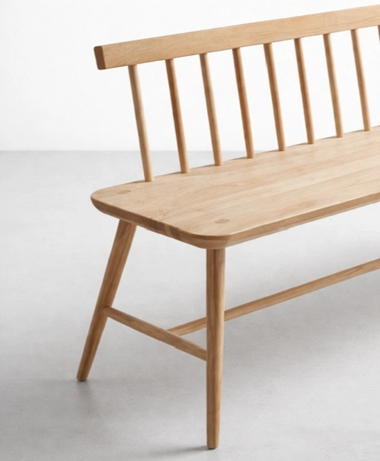 The bench can also be used beyond the dining area. It suits entryways, bedrooms, reading corners, and quiet living spaces where a long wooden seat adds both function and style. The vertical spindles create a classic detail, while the overall shape remains simple and contemporary enough for everyday use.