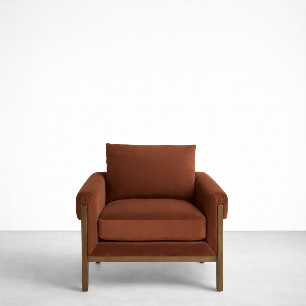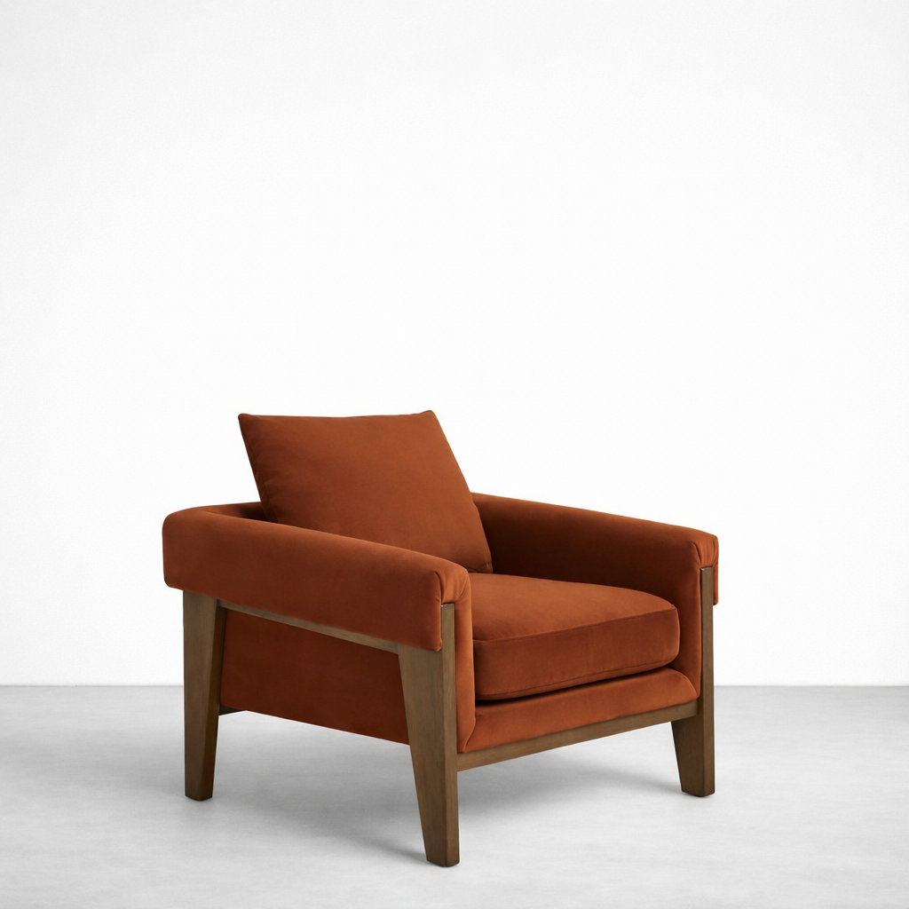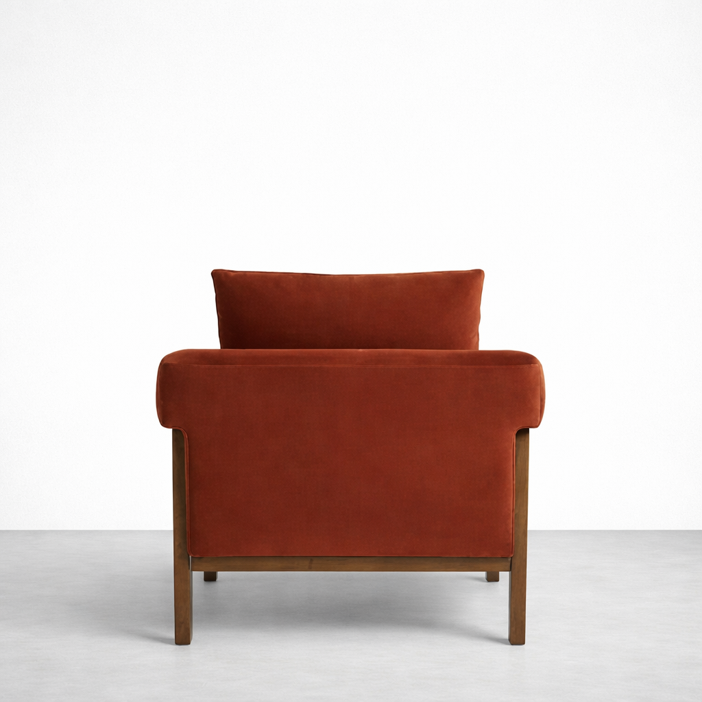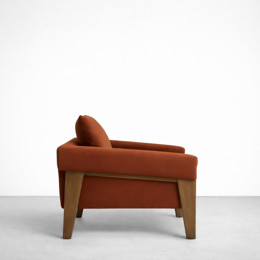 Arden Teakwood Upholstered Lounge Chair in Rust Velvet | INTERIORZE?