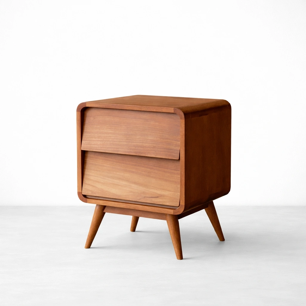 Teakwood bedside table with 2 drawers and curved frame by INTERIORZE GRACE Bedside Table Collection