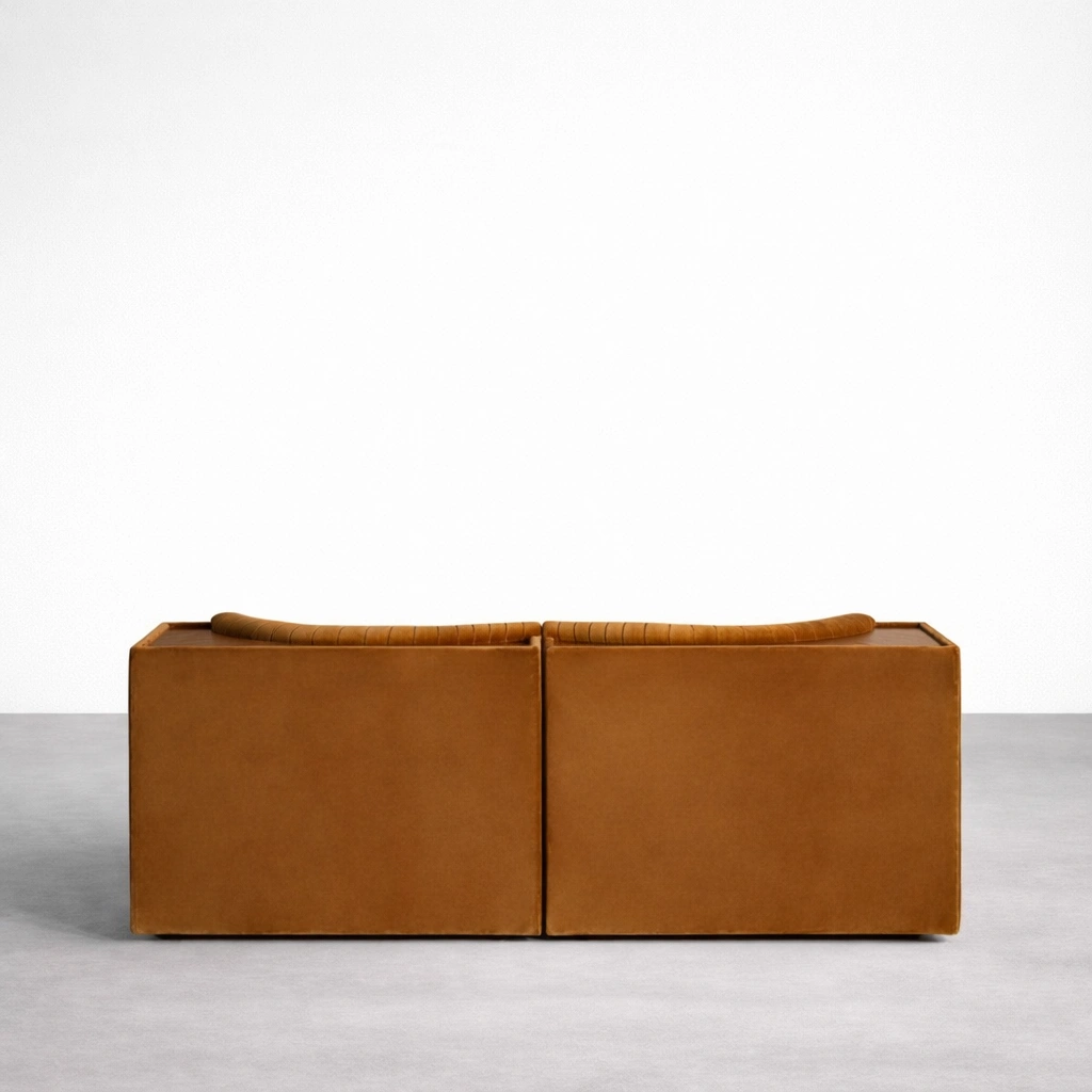 Caramel velvet upholstery with a soft, premium touch