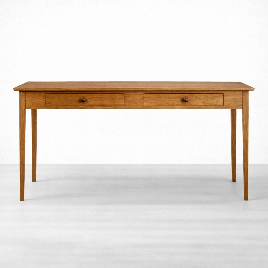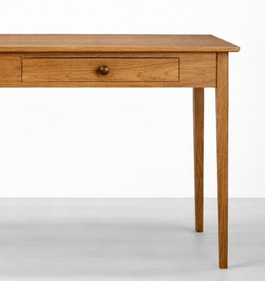 The natural grain of ash wood brings softness and warmth to the overall look. This makes the table a good choice for study rooms, bedrooms, home offices, library corners, and creative workspaces. The simple drawer knobs and straight profile also help this ash wood study table with 2 drawers work well with both modern and classic interiors.