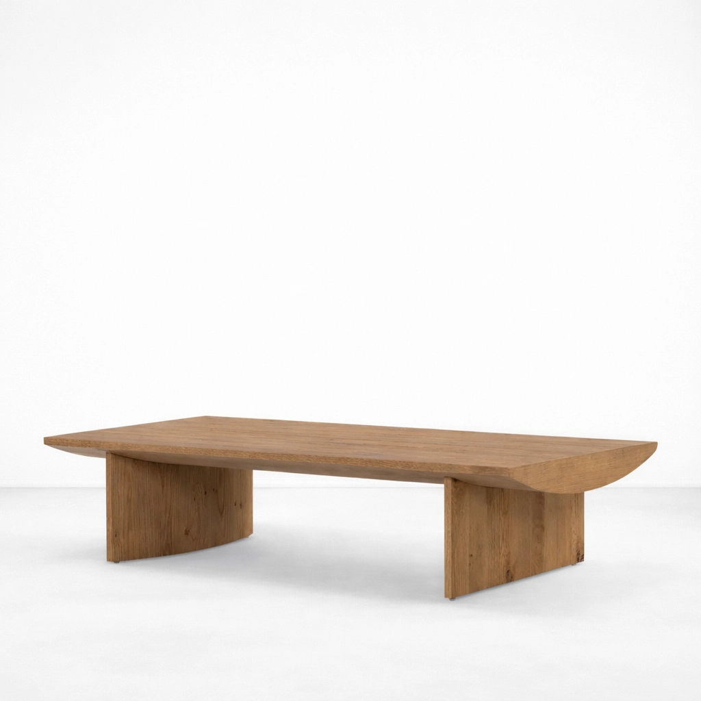Its straight lines and broad surface make it especially practical for everyday living, while the softened edges and visible grain pattern bring warmth and a more natural visual softness to the design. The result is a centre table that feels minimal yet rich in material presence, making it suitable for contemporary, modern, earthy, and timeless interiors.